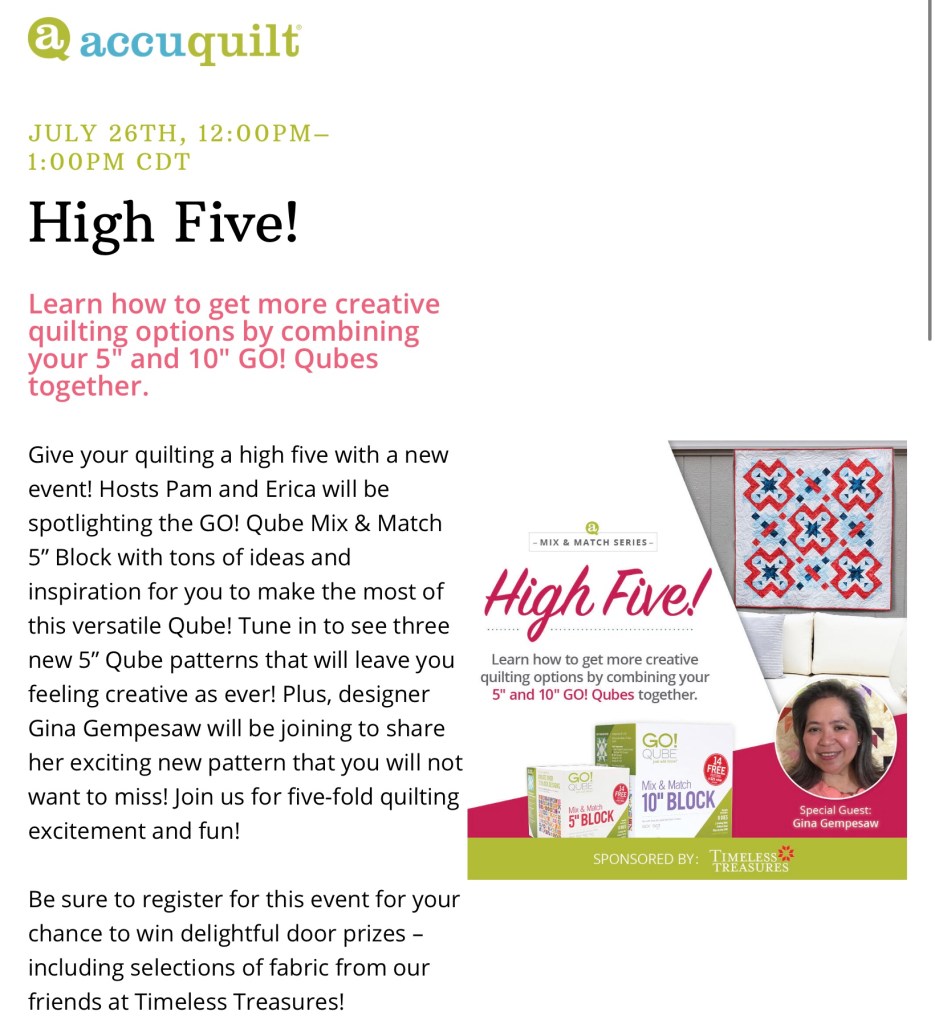 You can learn more about the 5” Qube by joining in on the AccuQuilt Live program today.
