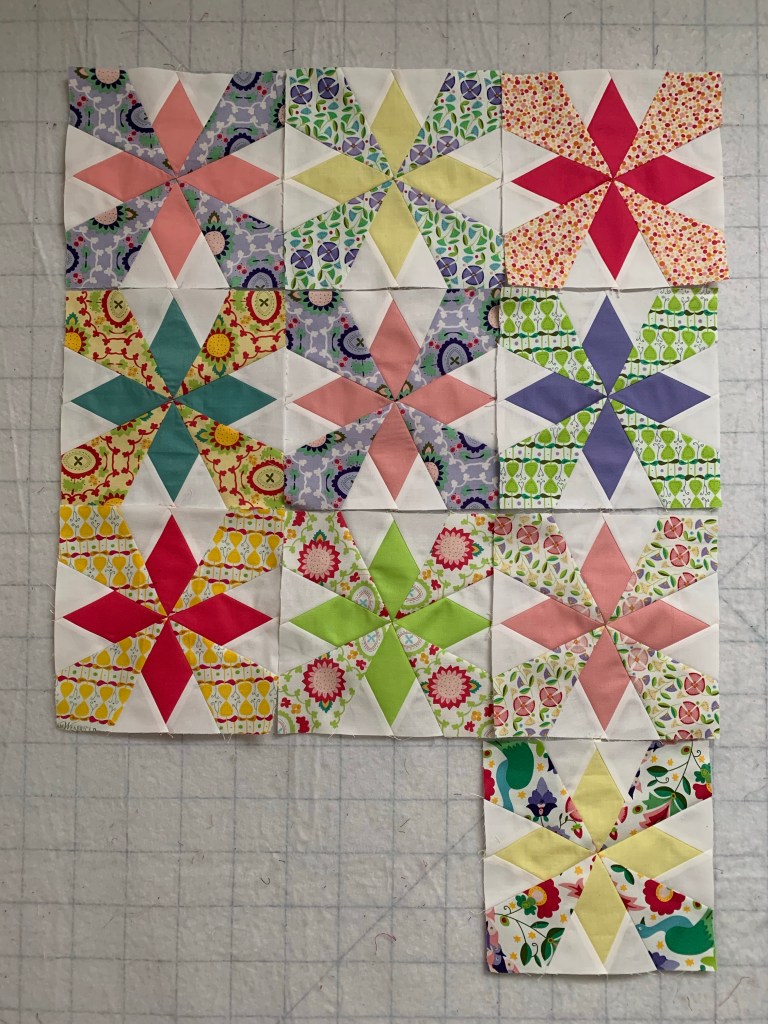I have several irons in the fire this week. Progress has been made on the blocks for the baby quilt. I have more done than this now, but I thought I’d keep you all guessing.