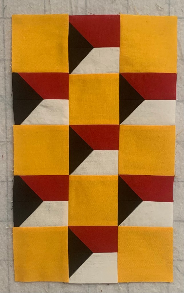 I substituted red for the orange. The orange I had on hand was too close in value to my yellow.