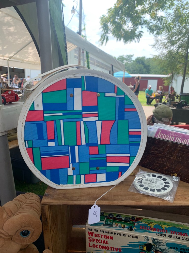 Had to take a picture of this. I had this when I was little! It was part of a three piece set and one of my favorite gifts ever. I’m sure I wore mine out. It had the exact same print/colors on the outside.