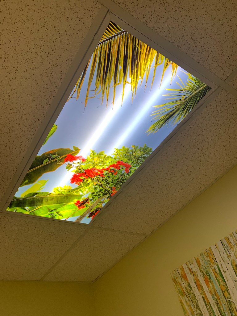 I had an EMG recently checking on Carpal Tunnel. Thus was on the ceiling and they had a tape of ocean waves playing. It was not relaxing.