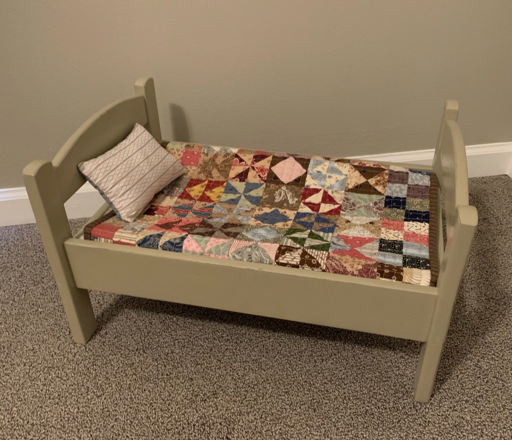 I’m always tickled to see your little quilts on the doll bed. It’s simply adorable. I swear, you can make any scrap fabric look great.