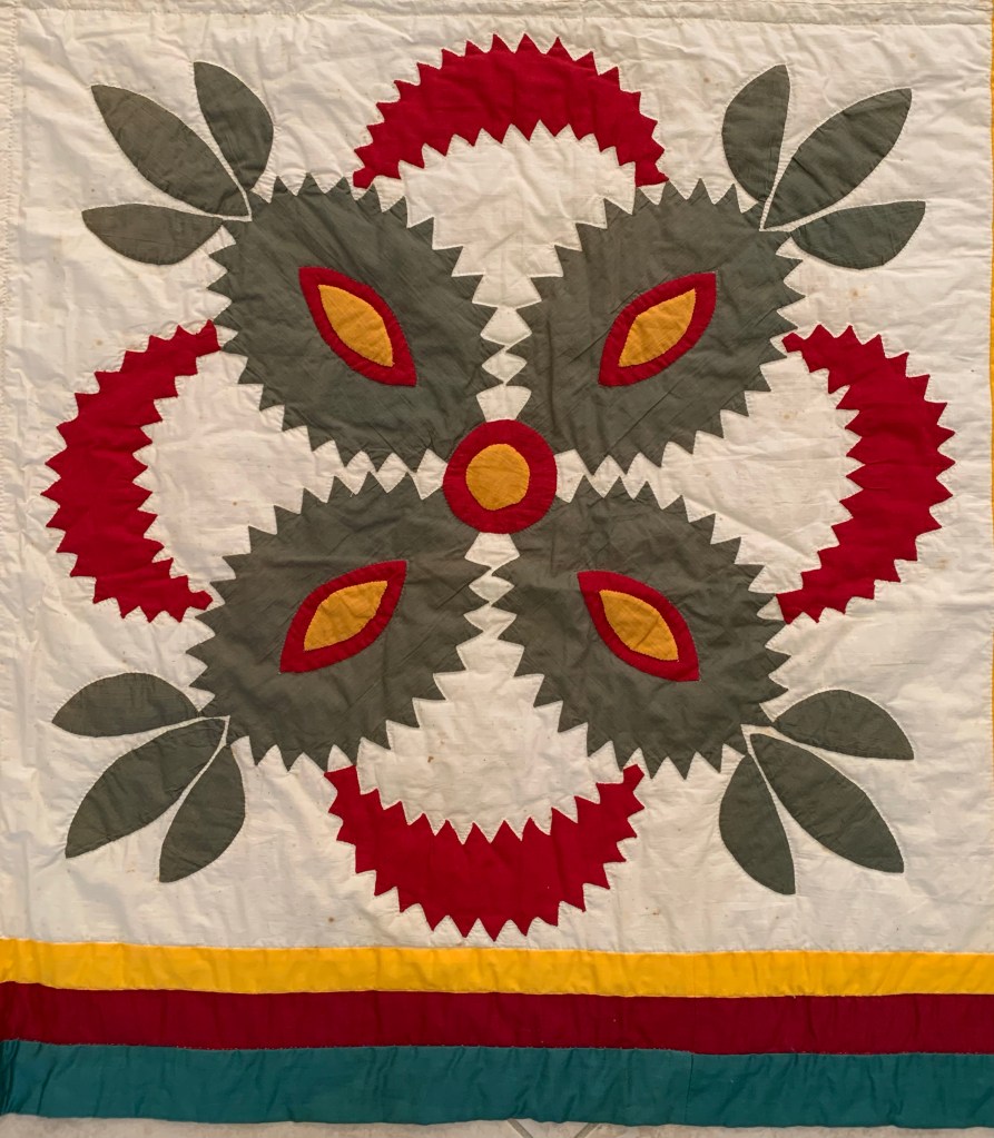 It looks like a pineapple…check out Barbara Brackmans A Cloud of Quilt Patterns/Encyclopedia of Quilt Patterns, she has a blog post on Jan 29, 2018 about Southern Pineapple.