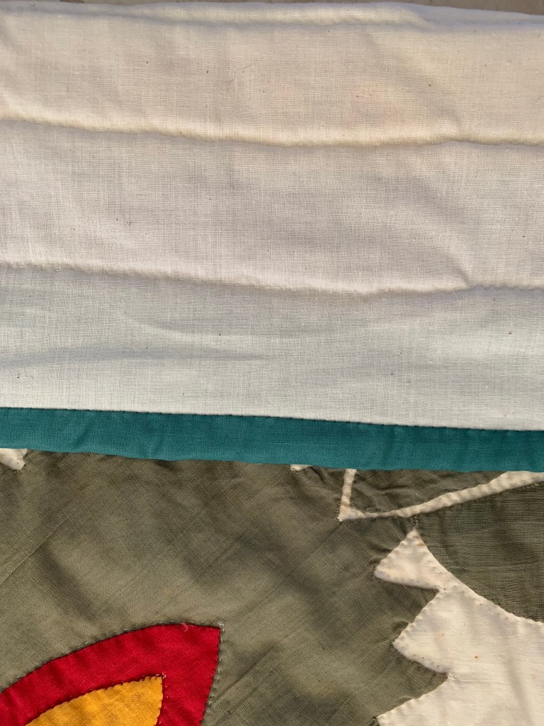 After studying this, I think it is a very old top that was more recently finished. The border fabrics seem newer and don’t match the blocks.