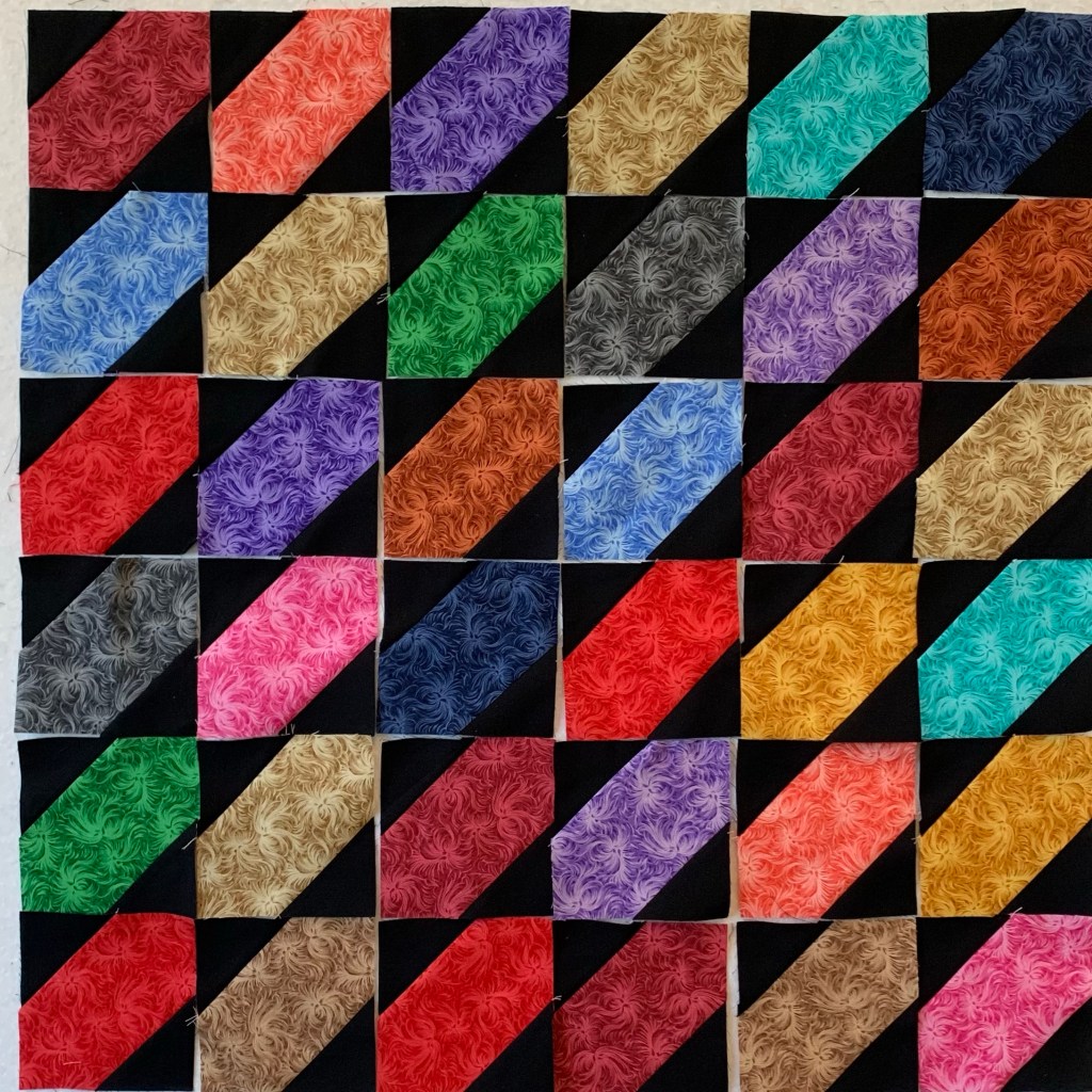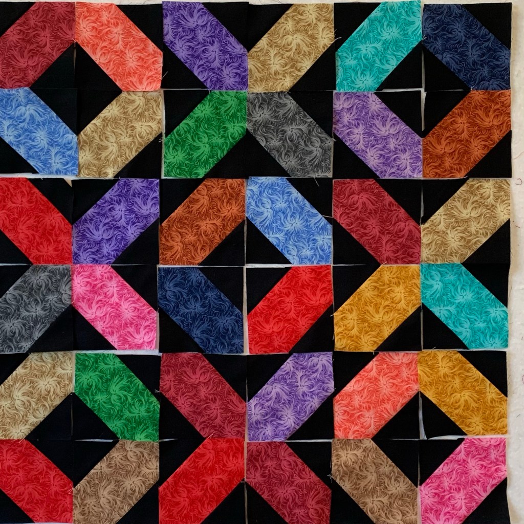 I pieced enough blocks to play a bit with layouts. AccuQuilt calls this a Signature block, but it seems the name of the quilt can change depending on how the blocks are set.