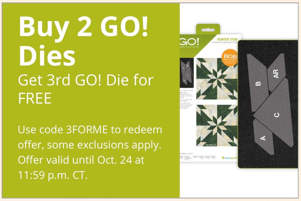 AccuQuilt is having quite the sale this weekend! I try not to post ads too often, but this is too good to pass up. And what kind of friend would I be if I didn’t share a good deal?