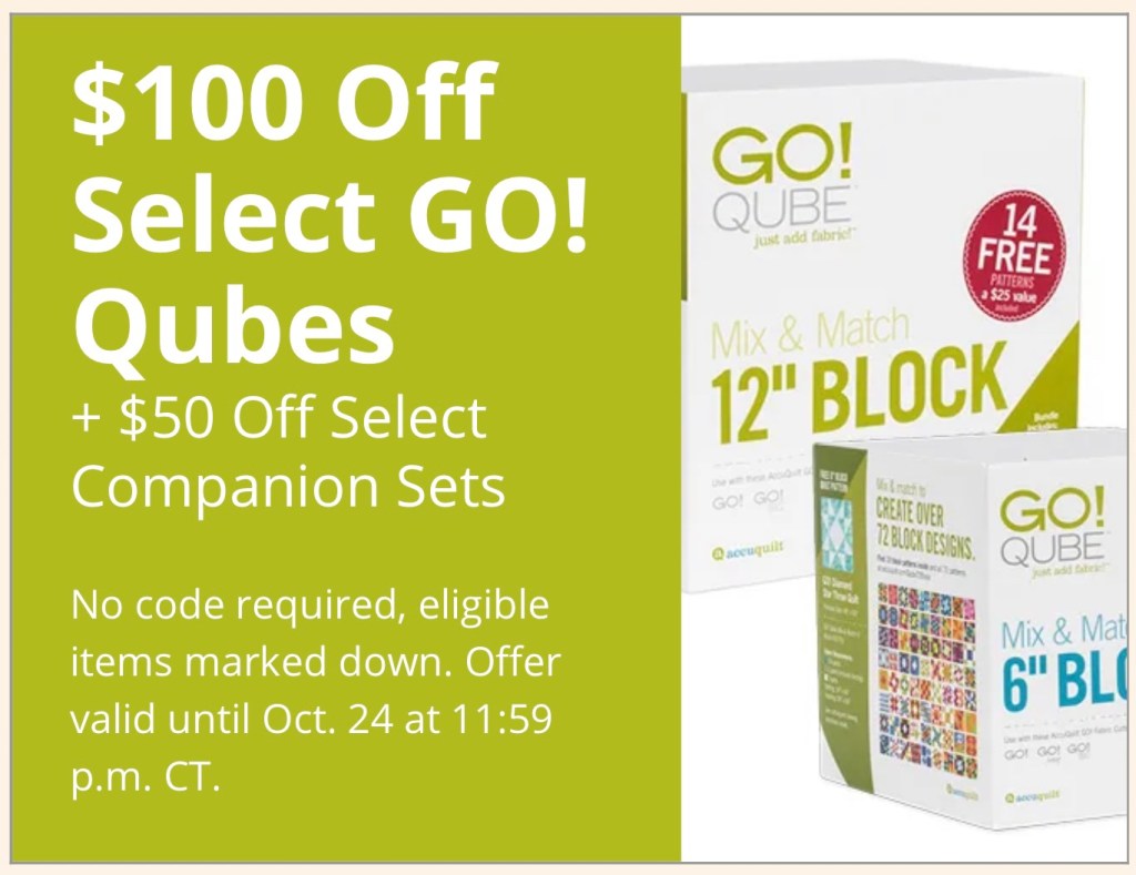 And $100 off GO! Qubes and $50 off Companion Sets!