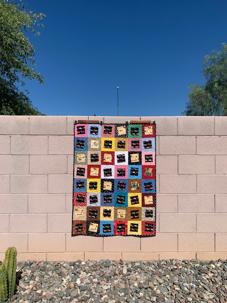 I finished this up before we left Arizona. I didn’t have a lot of sewing time, but this small kids quilt was a perfect project.