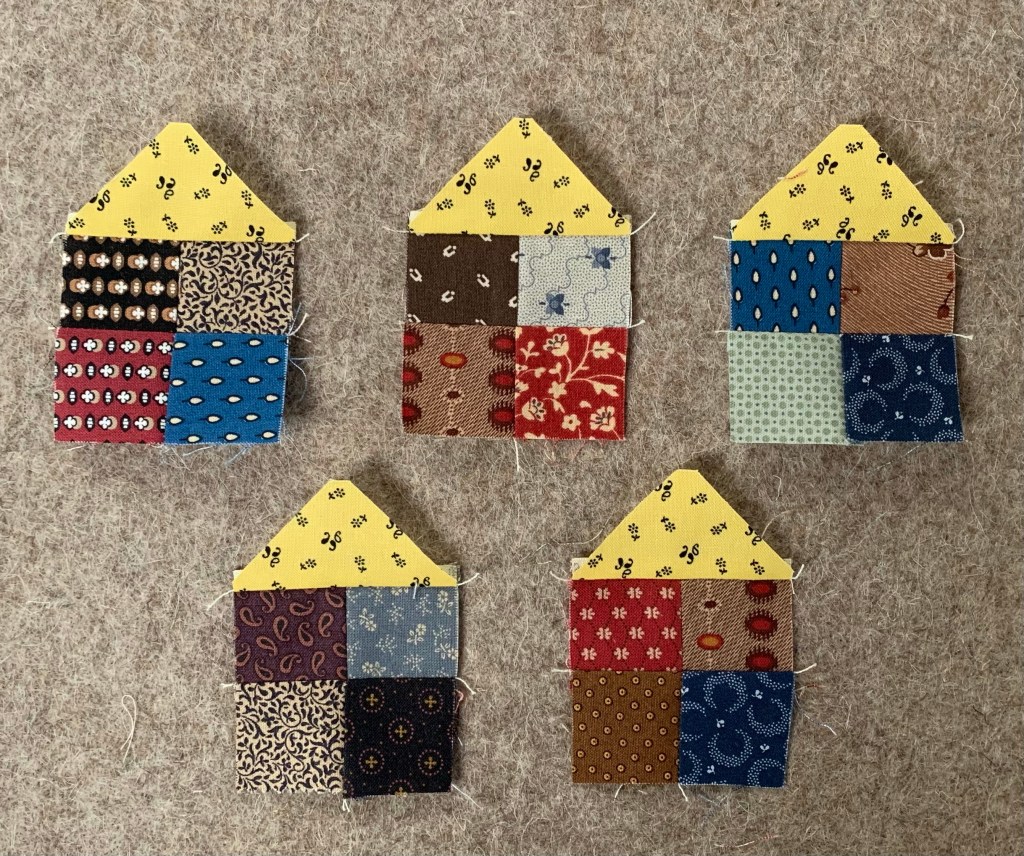 While adding these triangles, I decided these would make very cute house blocks! I’ll have to remember this.