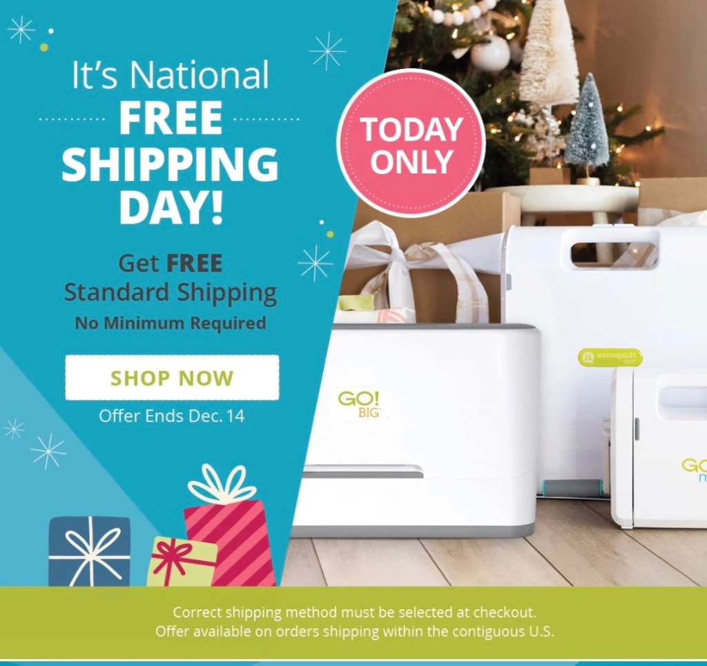 Sorry to let you know so late, but there is free shipping on any order at AccuQuilt until midnight tonight, Central Time!