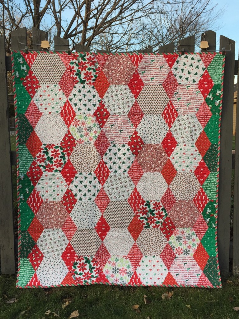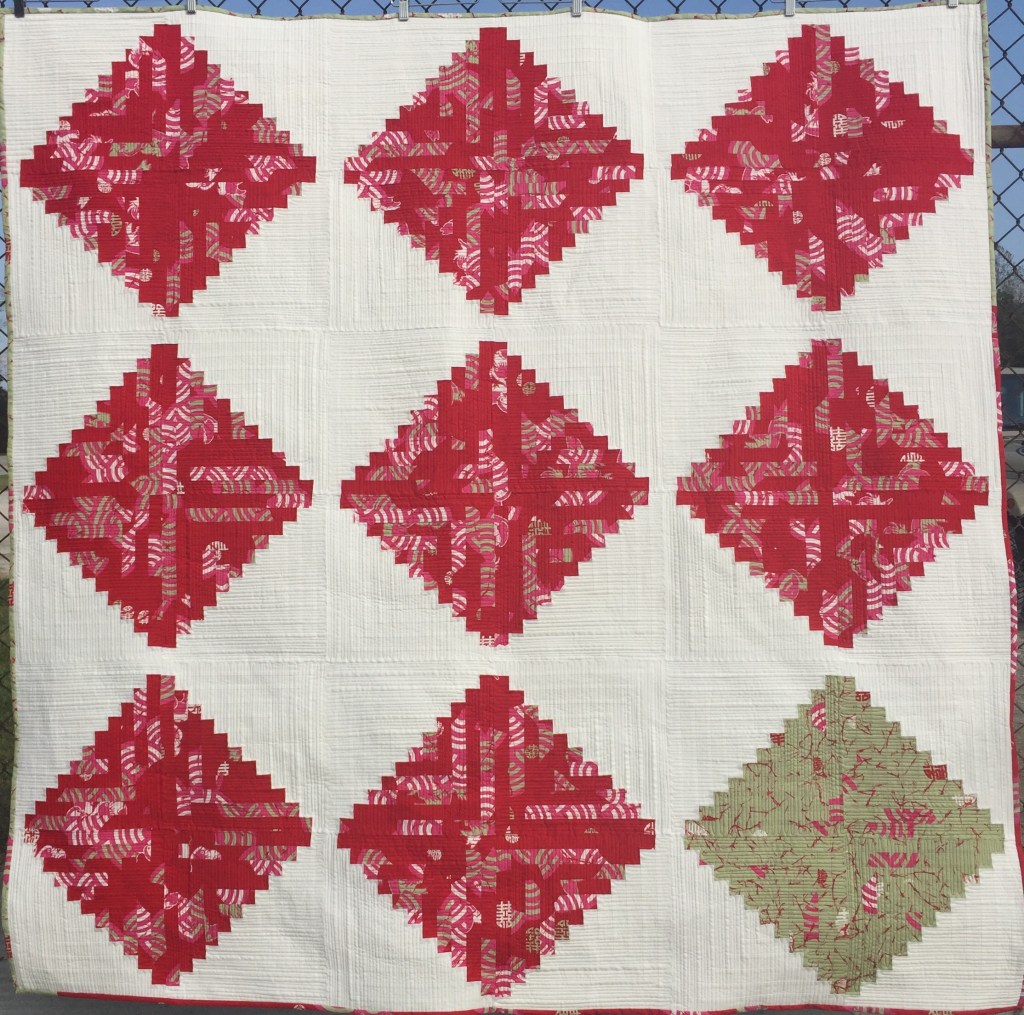 I love your Christmas quilts! The last one with the simple rectangles is a favorite. I’m especially interested in the one with the red diamonds. Can I ask how that one went together?