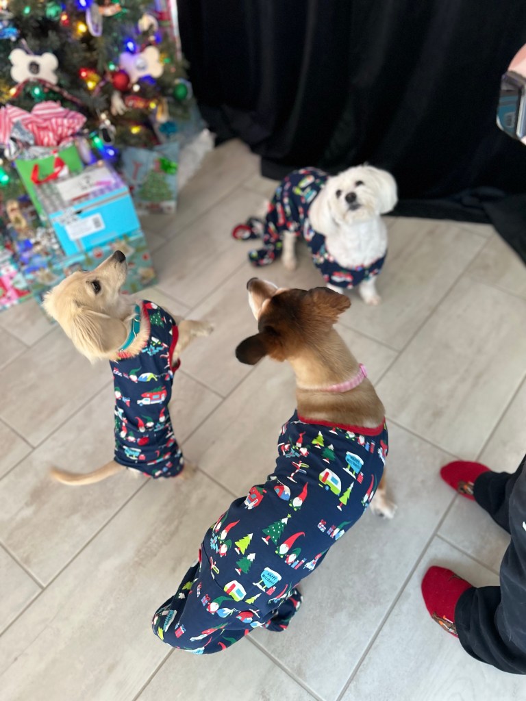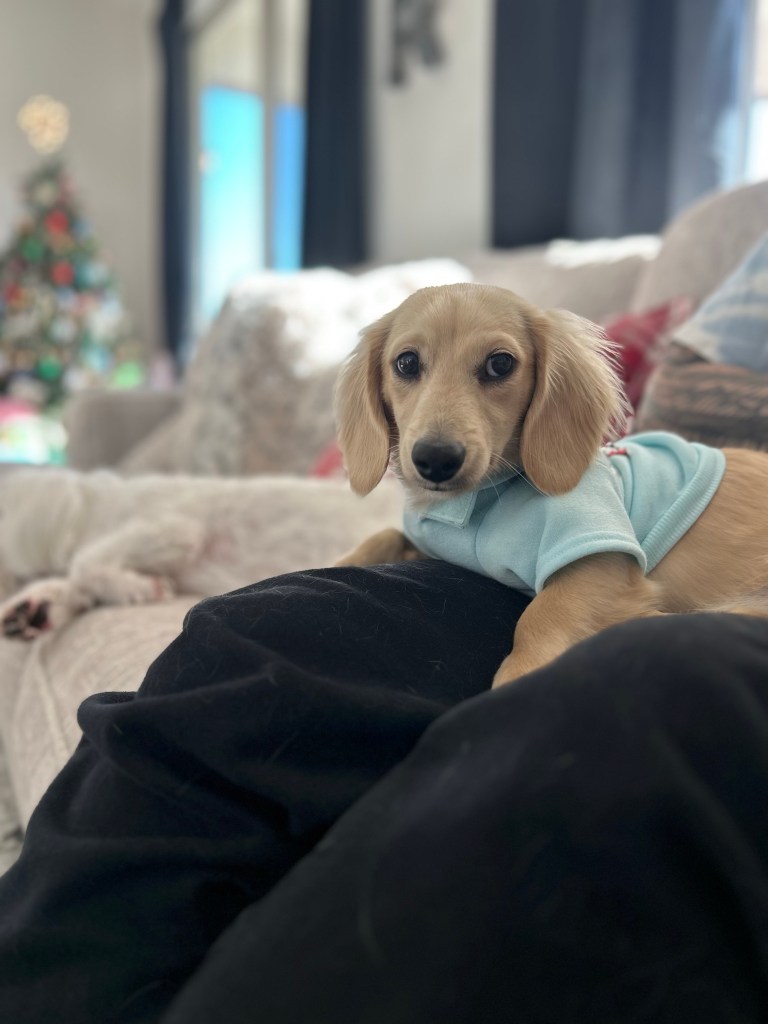 I have a new grand dog! See that cute little wiener dog? His name is Milo and he’s setting in nicely with his big sisters, Bambi and Winnie.