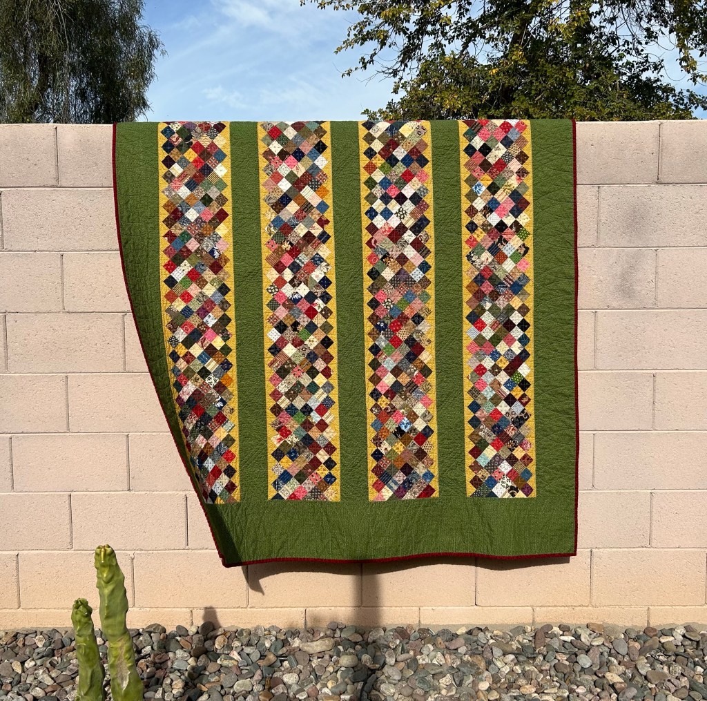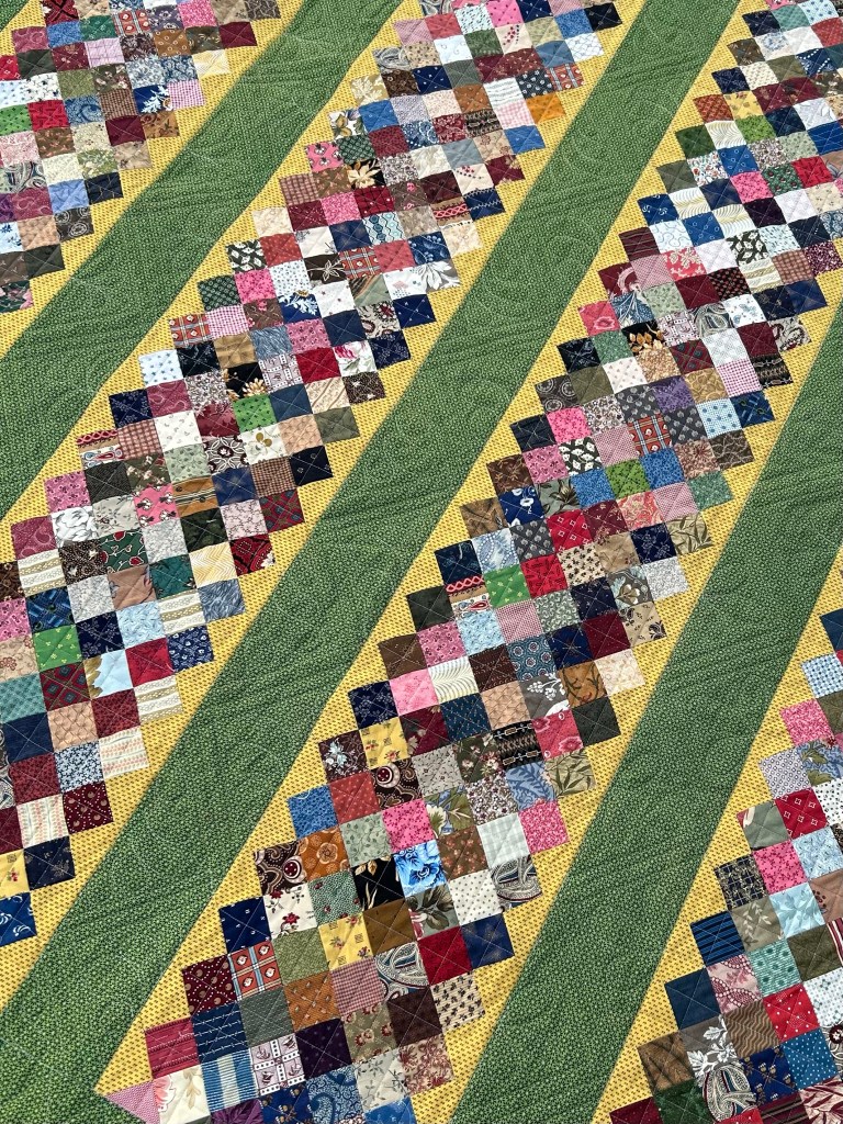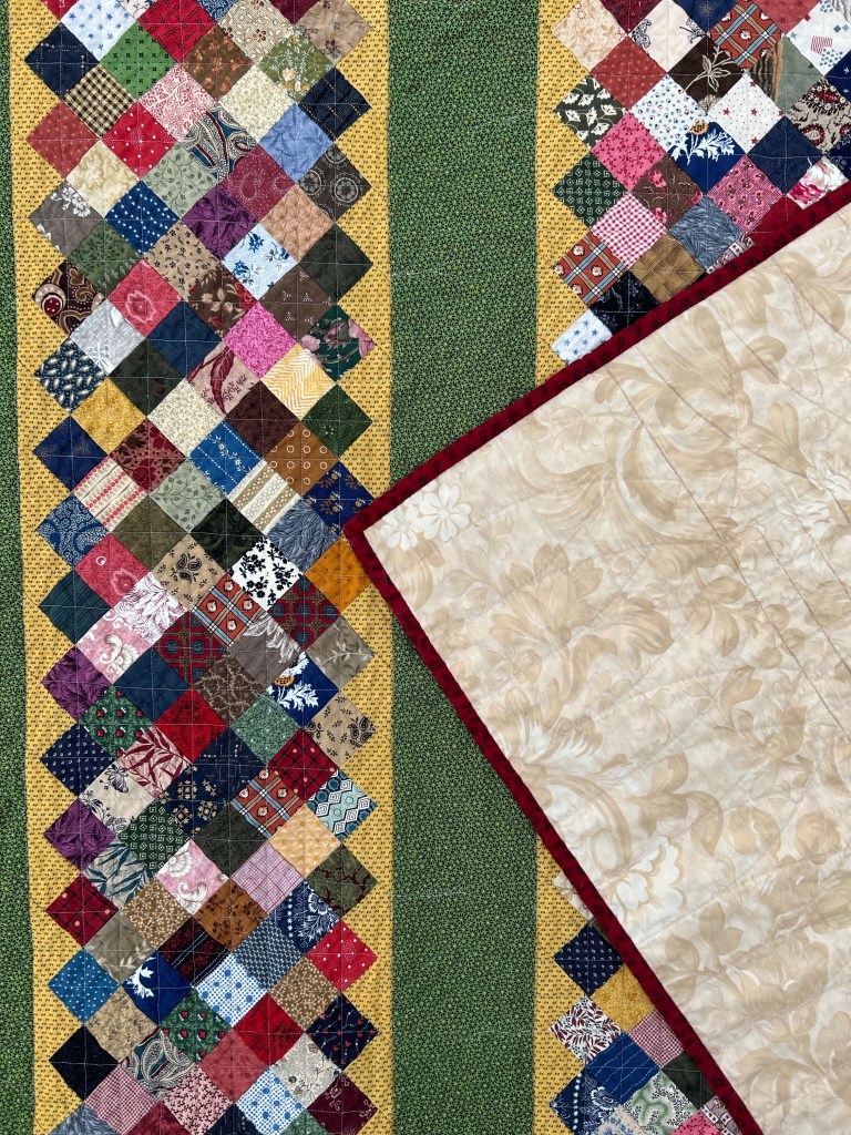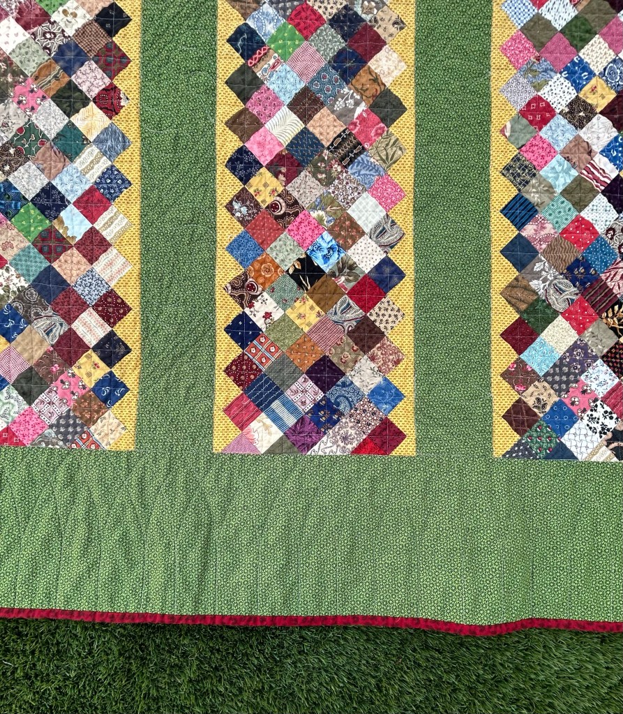 Is it possible to add more quilting to the border without taking the binding off, Katy? It’s a lovely quilt; I love scrappy quilts! This one is a stunner.