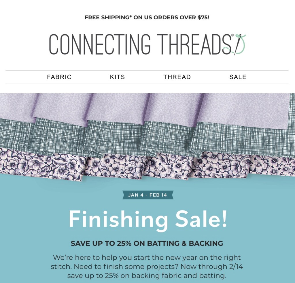Before I go, I wanted to let you know about a couple great sales. First is this one from Connecting Threads .