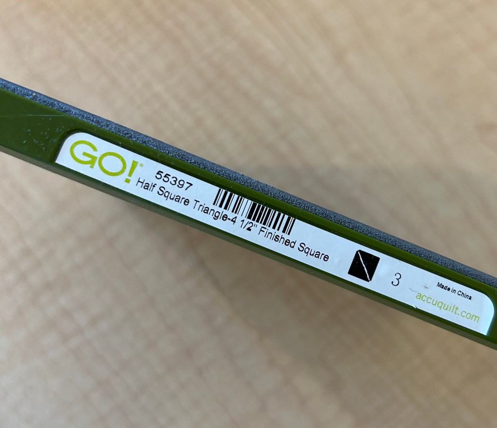 I didn’t cut the charms at all. The HST blocks will finish at the same size. I used this die from the AccuQuilt 9” Qube to cut my triangles.