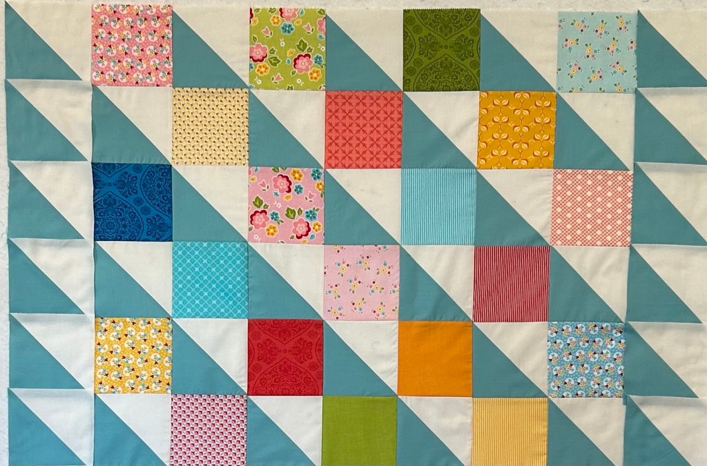 I don’t like skimpy quilts, so I’ve been thinking about how to make this bigger. Here is one possibility.
