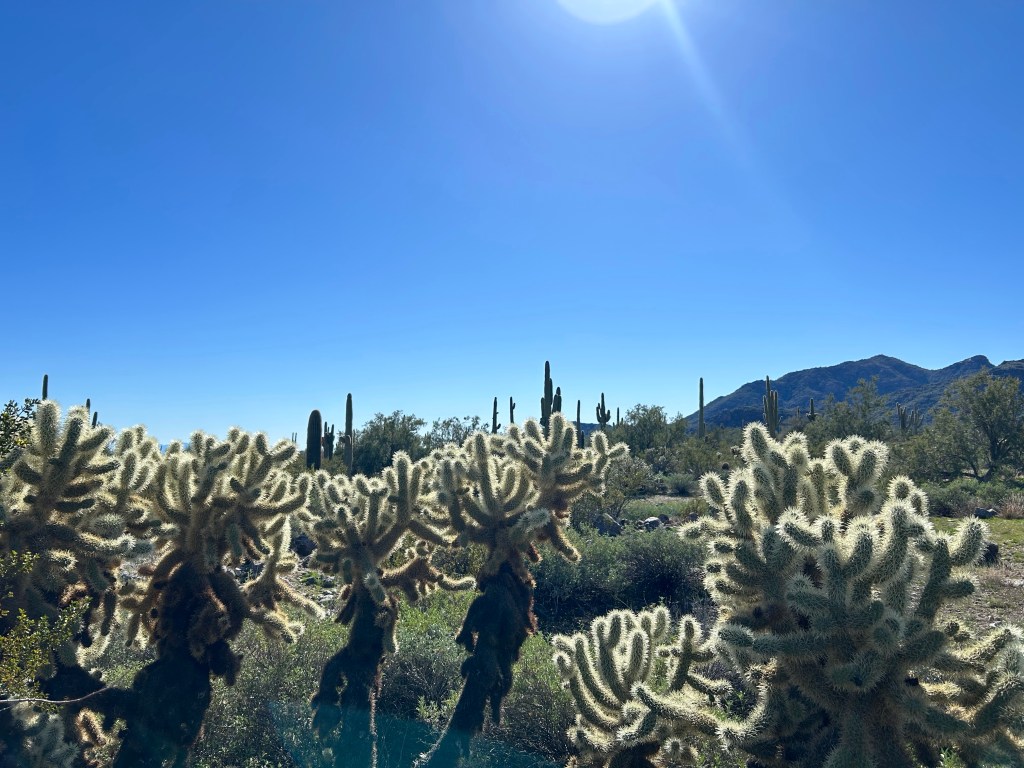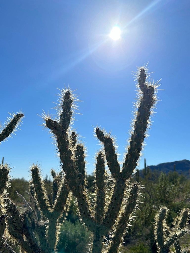I love how the light filters through the spines of the cholla. They look so soft and fuzzy…..let me assure you, they are not! You’ll need pliers to get them out of your shoes or flesh!