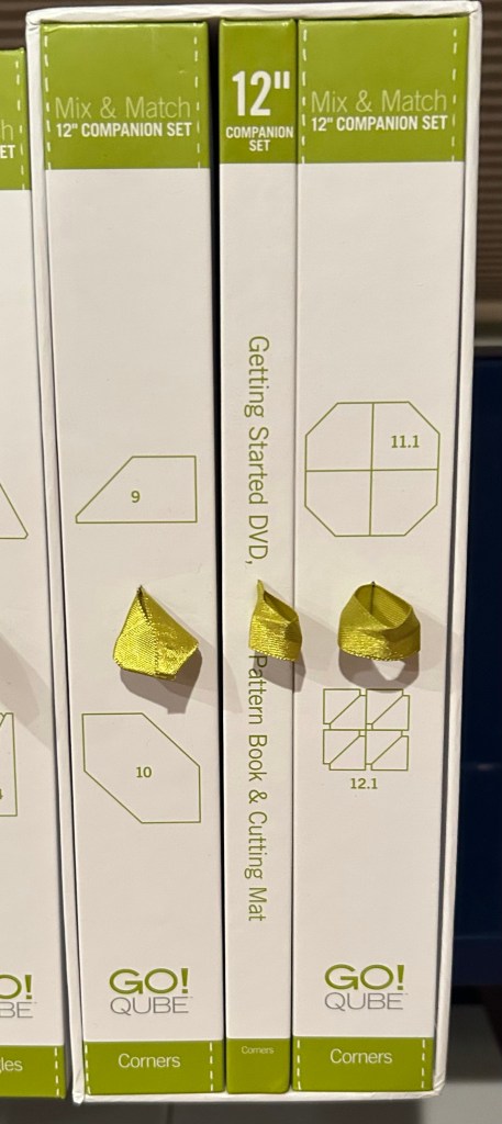 I used dies 11.1 and 12.1 from the AccuQuilt 12” Companion Set. – Corners as well as Die 3 from the 12” Qube.