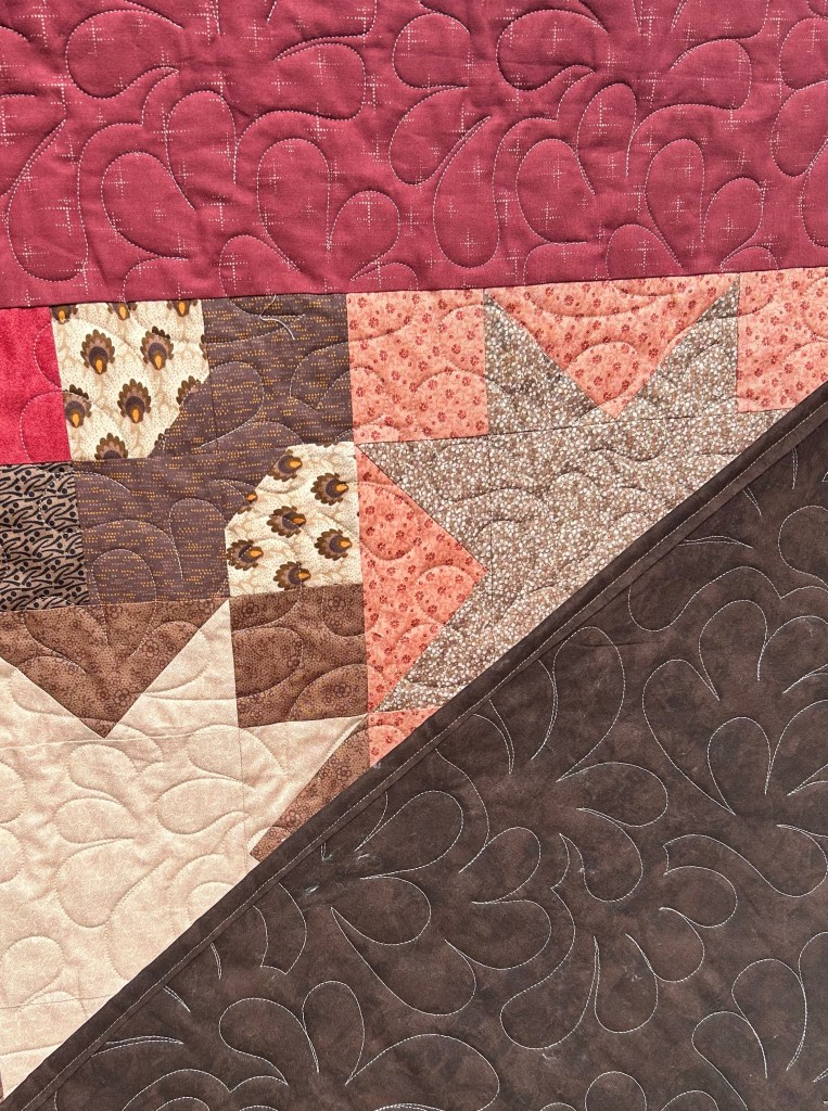 This quilt turned out even better than I expected. I thought along the way that it might be too dark, but in the end, I think it’s just right.