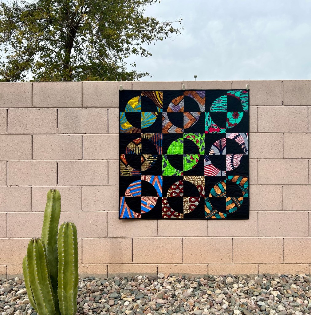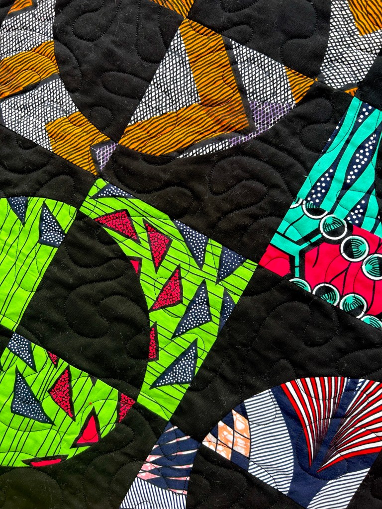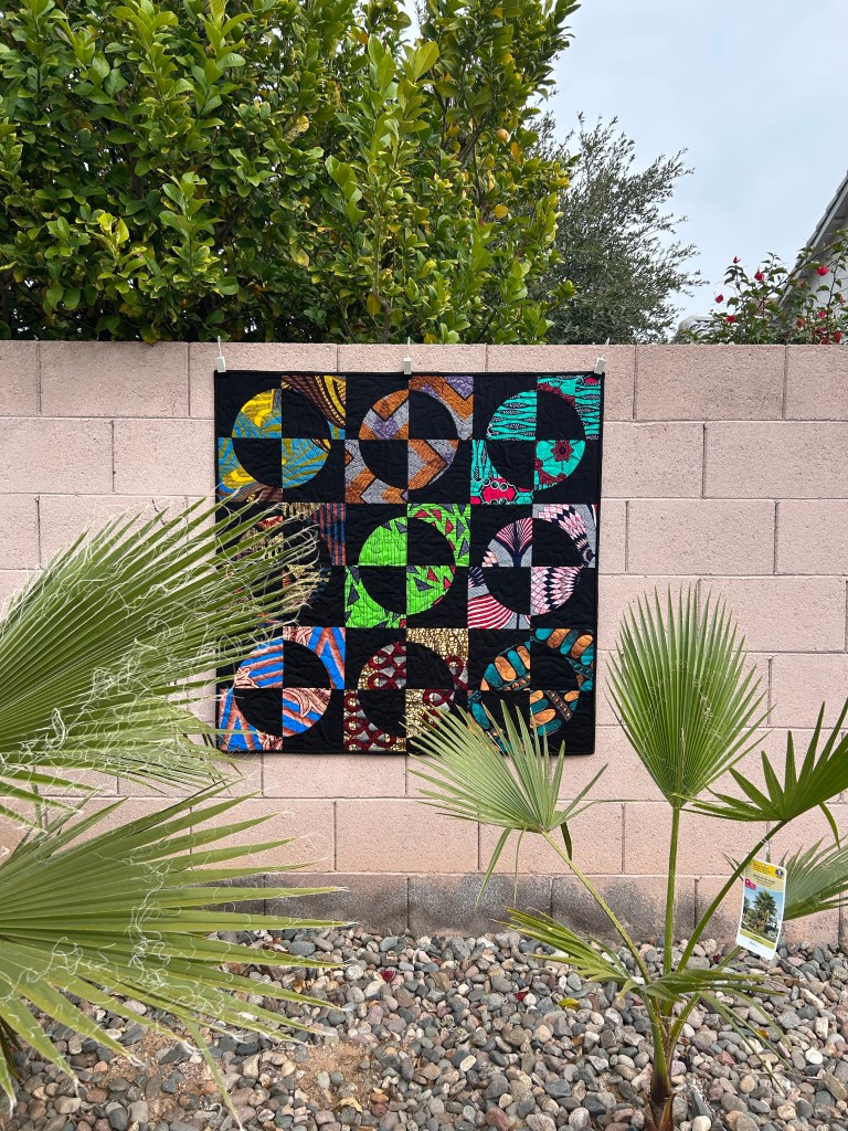really colorful – great statement item. the backing is one of those fabrics that drives my eyes crazy if i try to cut it. backing is a great use for it. patti in florida