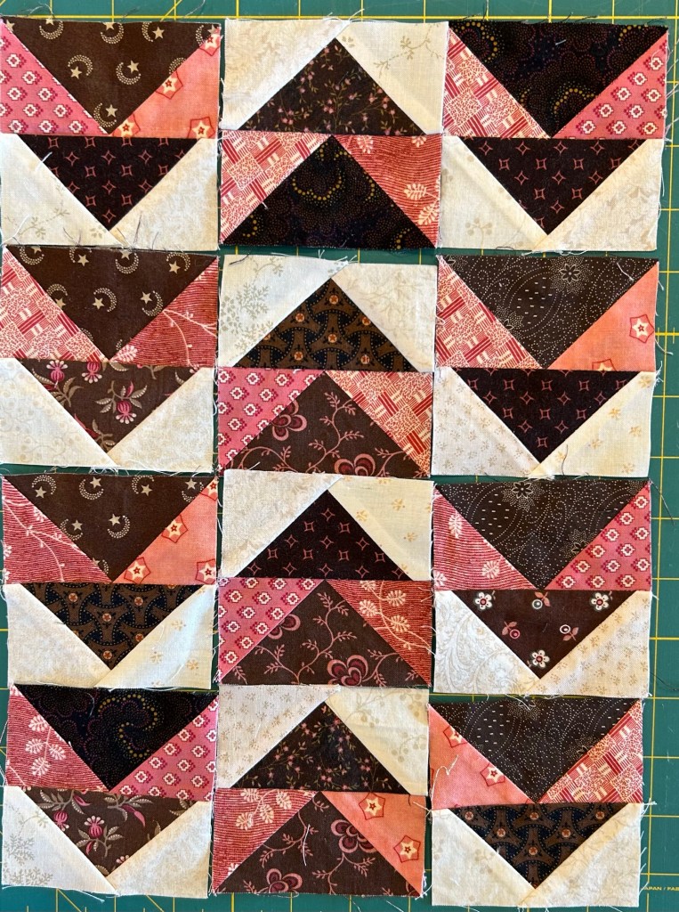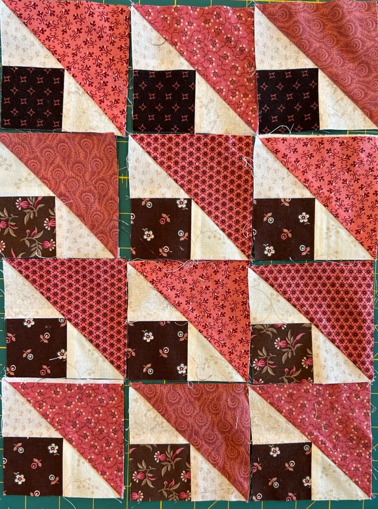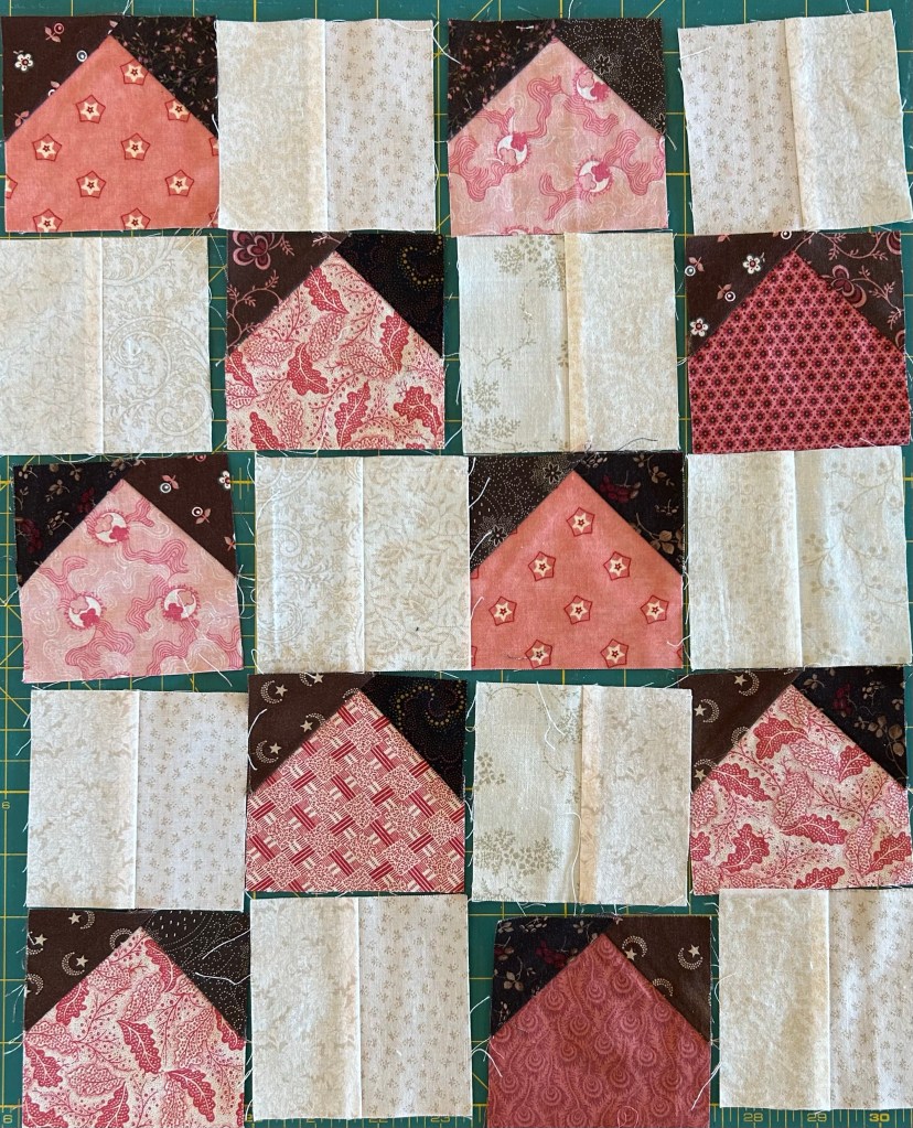 A sweet friend sent me some fabric and included some block parts. This is just the kind of challenge I love! I have no idea what the block was supposed to be, but I could use these pieces for a sweet little doll quilt.