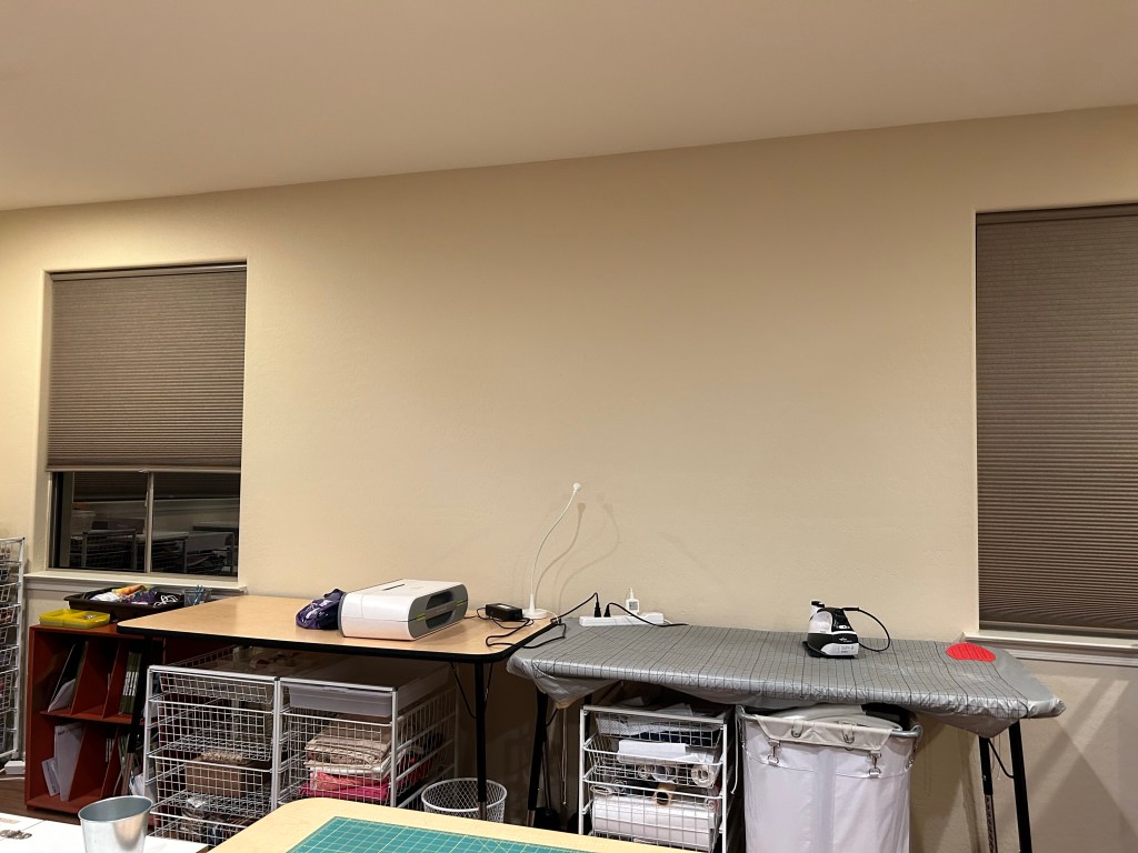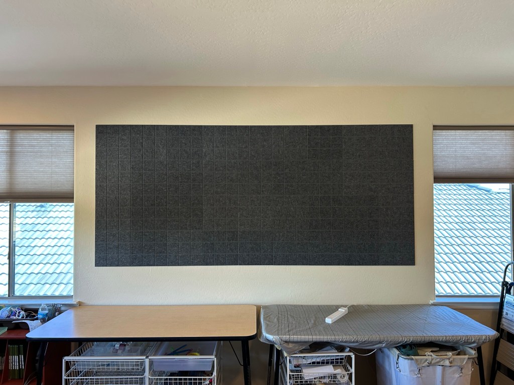 It will make a nice background for photography of small pieces. But I have to move my tables and use a step ladder to change quilts. So it isn’t that handy. It does look nice and it is supposed to deaden sound.
