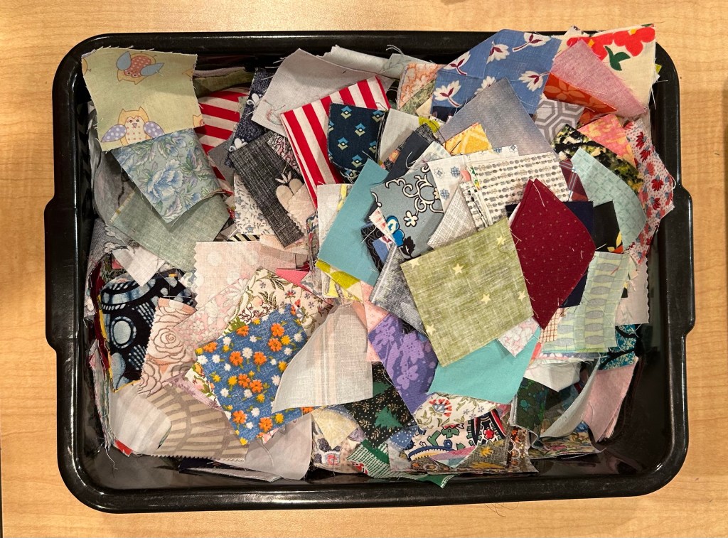 My leader/ender project is moving along! But I am not sure this bin of 2 1/2” squares has gone down any! I think they are multiplying.
