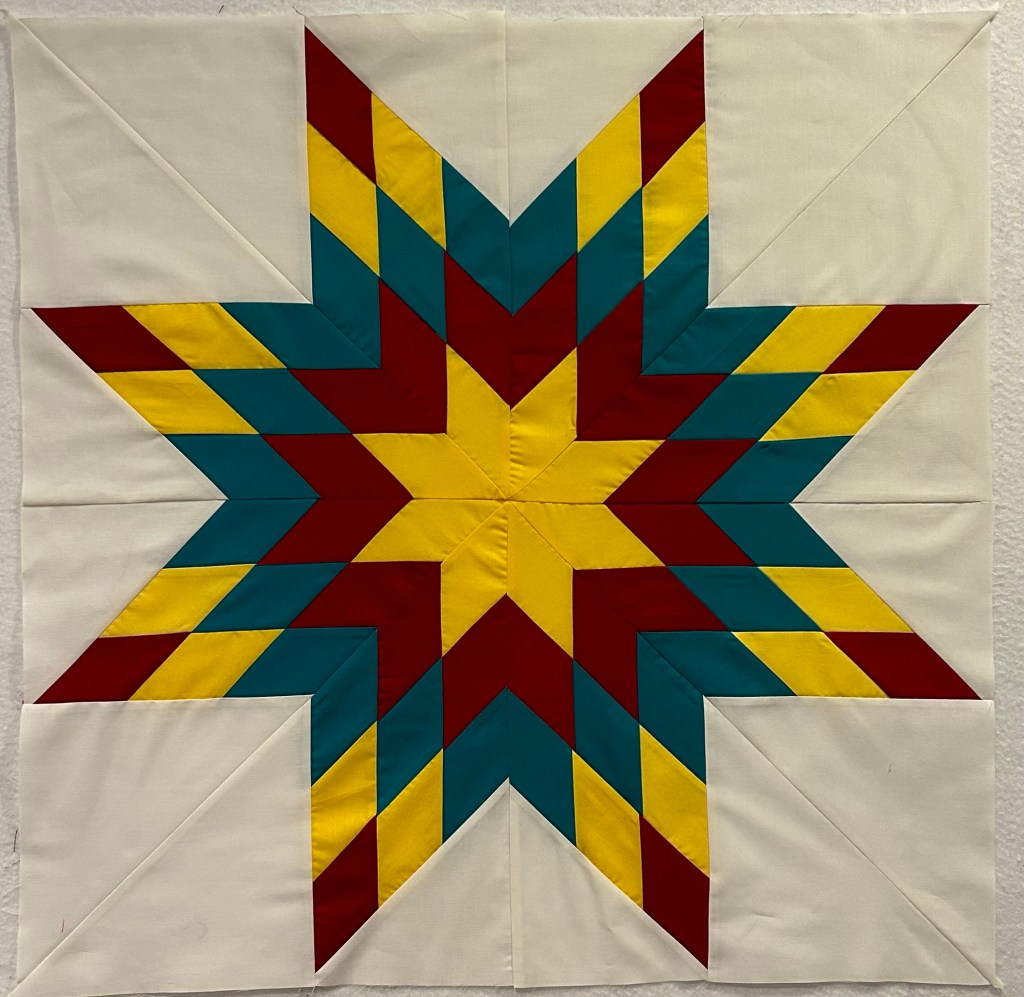 So, I cut oversized triangles to put my star together. It is not perfect. Some of you have asked what size I would cut the settings triangles, the answer to that is that I have no answer. I clearly did t figure correctly so I trimmed it after piecing. Sorry about that!