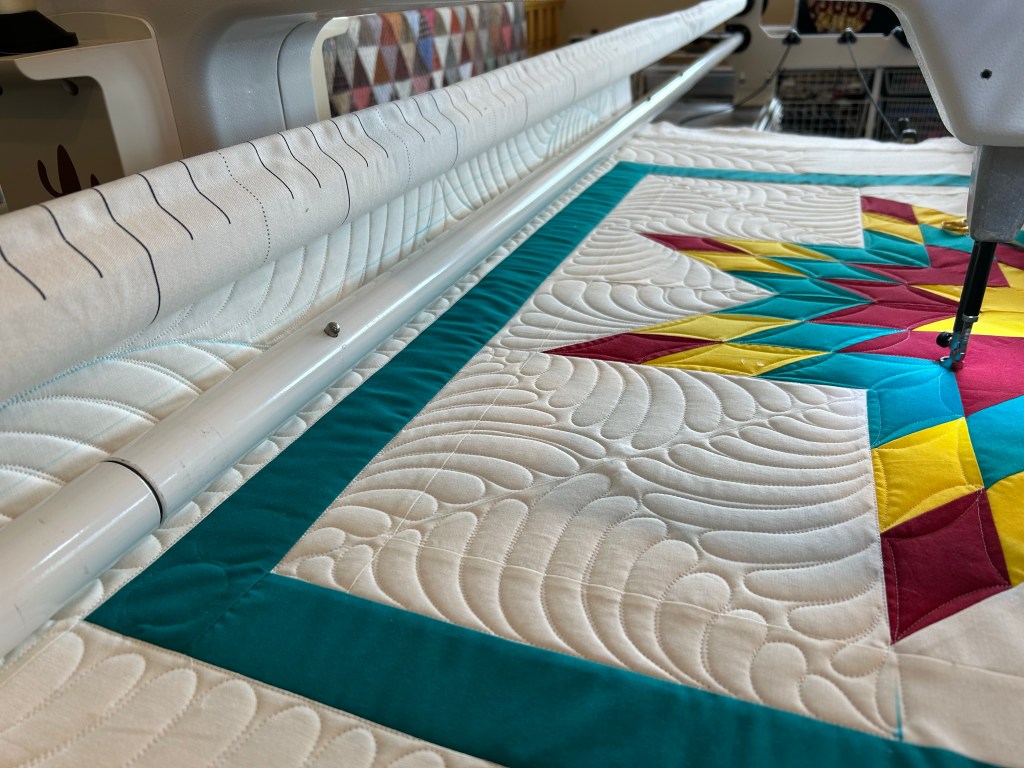 Katy I love it! Your feathers are fantastic. I have been practicing them, but nothing I’d put on a quilt yet, lol