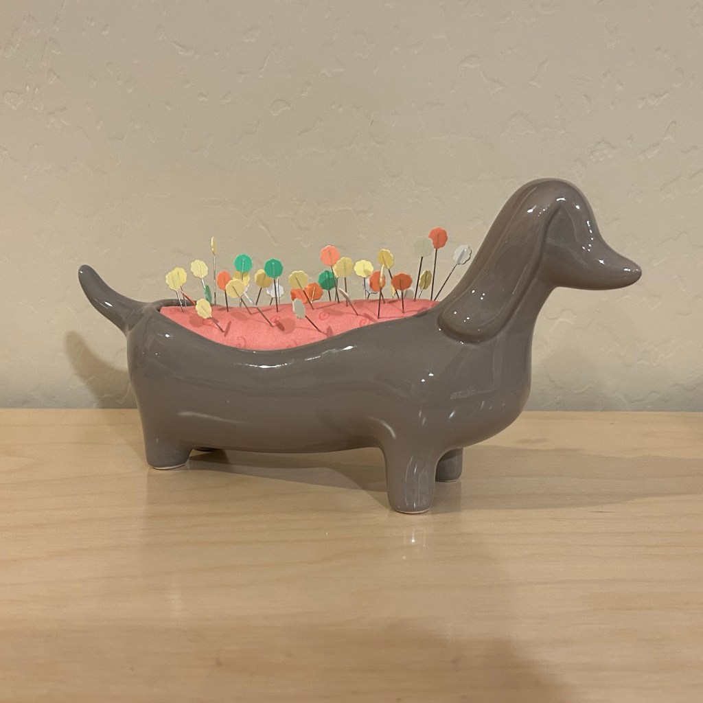 I found this cute little planter at Goodwill and turned him into a pin cushion.