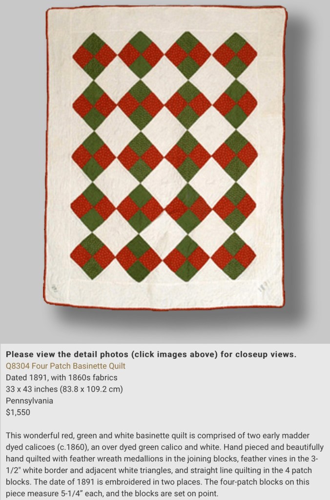 I found this adorable vintage quilt online and thought it would be fun to reproduce. This is a crib quilt, but I planned to make a doll sized quilt.