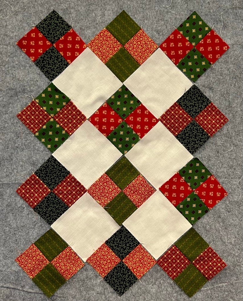 I’m feeling a bit underwhelmed at this point. Maybe I’d like it better if I use a shirting print for alternate blocks. or maybe I should forge ahead and add interest with hand quilting.