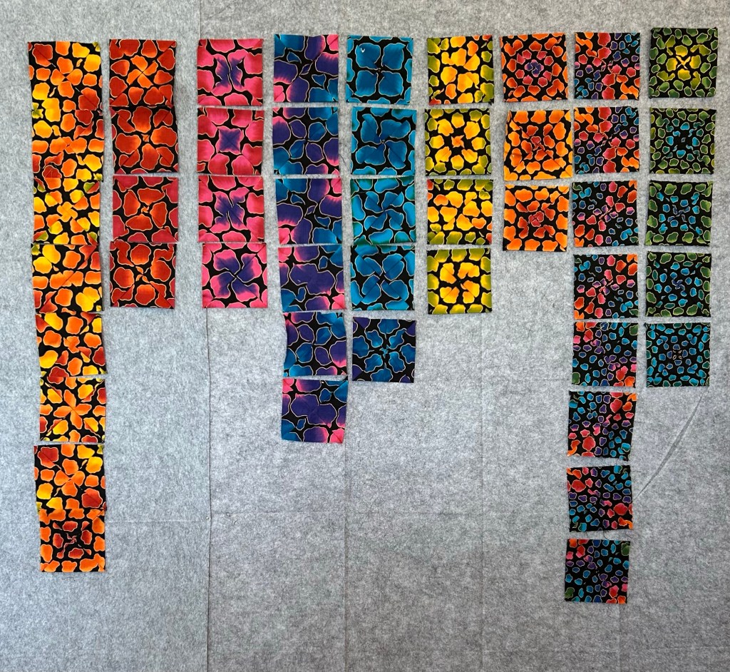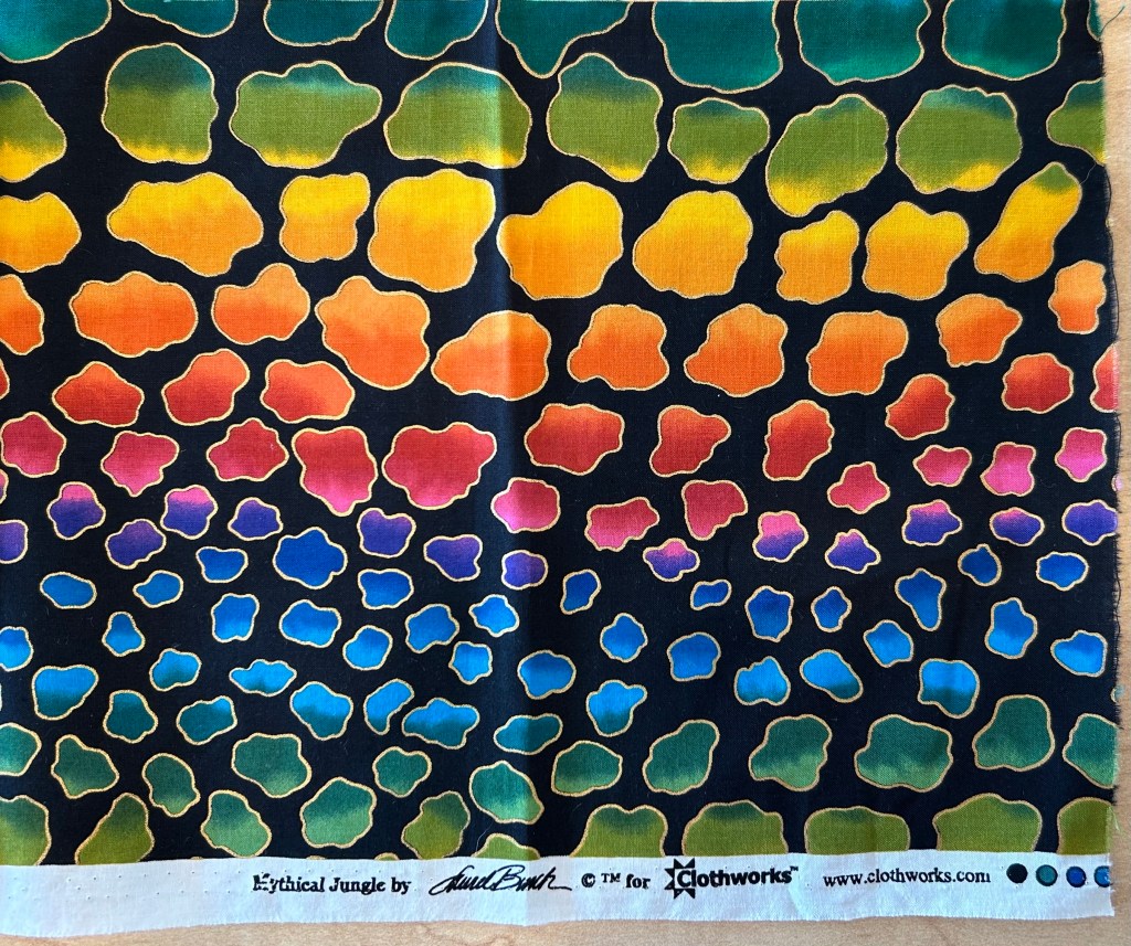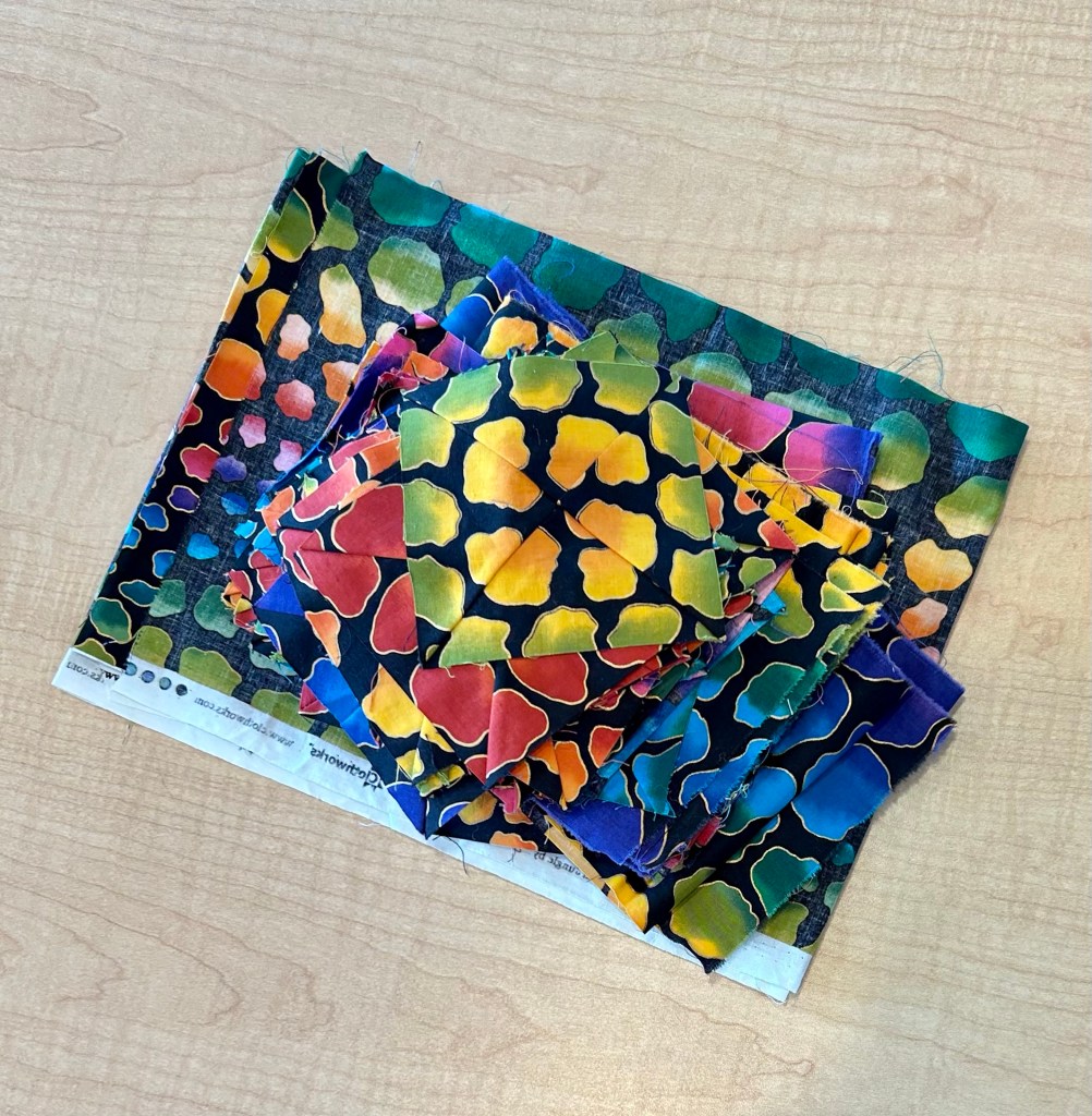 I think this is the start of a One Block Wonder quilt? I’m not sure. I never would have bought this fabric, but it’s an idea I’ve played with before. This is what a single block looks like.