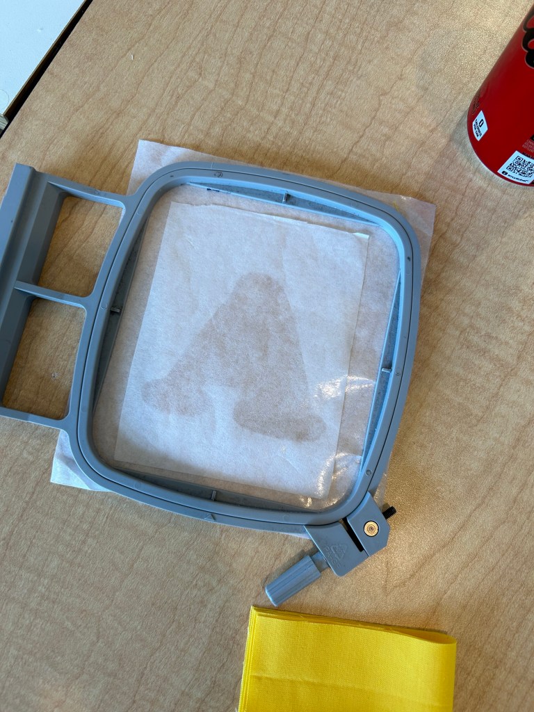 I’m no expert on machine embroidery. I like to use Sulky Self Adhesive Tear Away stabilizer. It might not be the best for this project. After finishing one letter, I cut a piece of stabilizer to cover the hole and do the next letter. I replace the base layer from time to time. Beware, this is a quick and dirty method and your mileage may vary.
