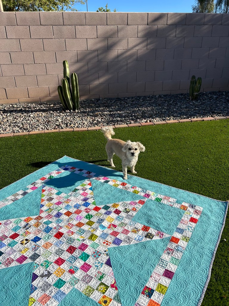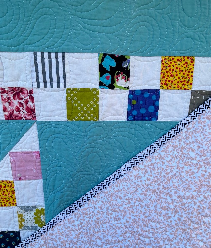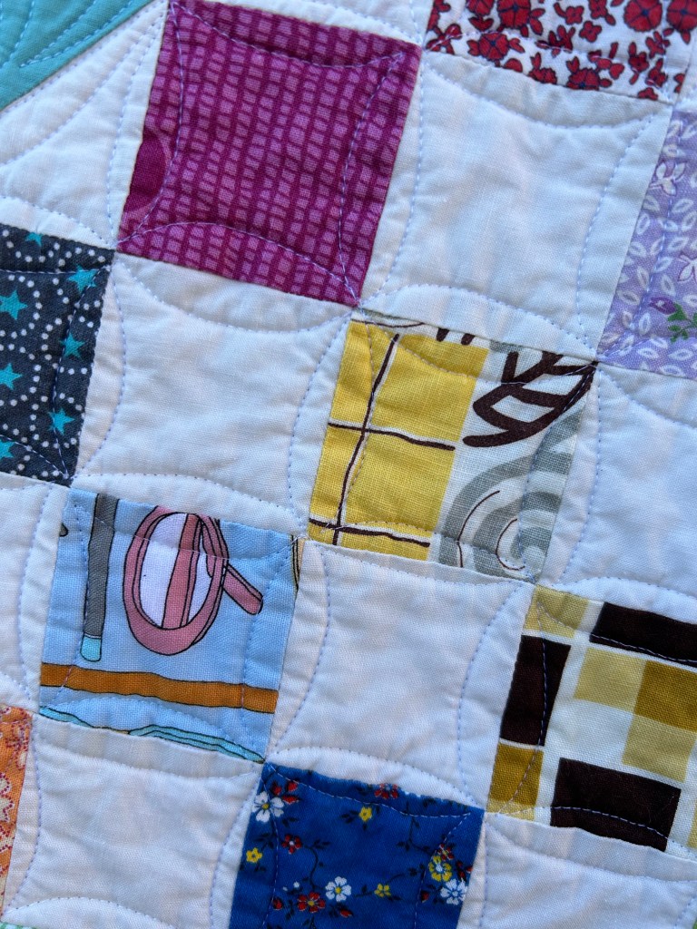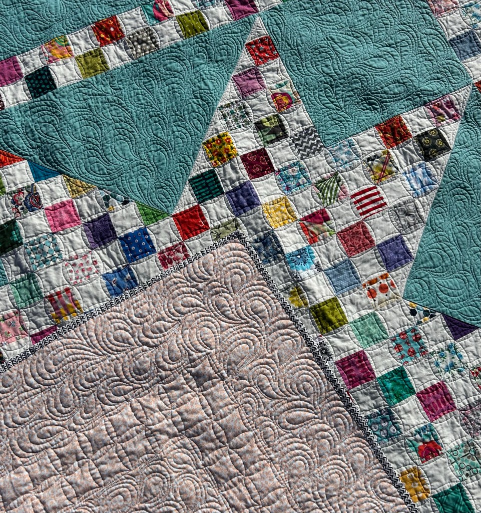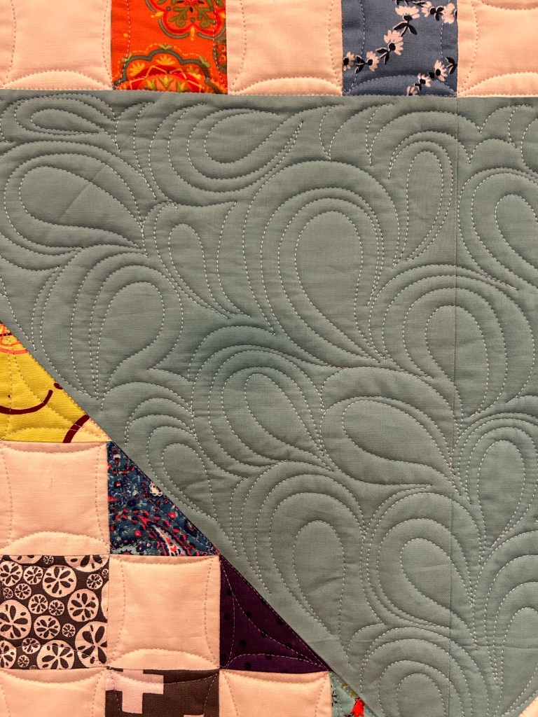 I hadn’t done this much of this kind of quilting before. The individual parts aren’t great, but taken as a whole, I’m happy with it.