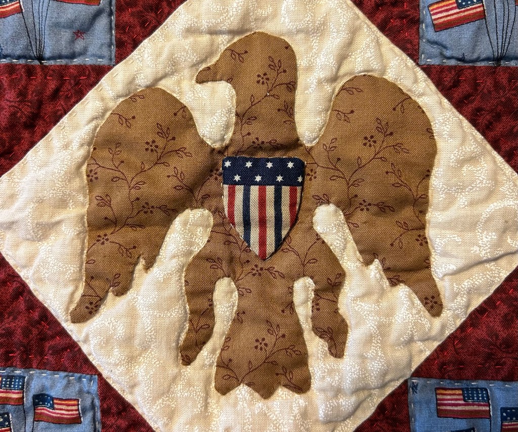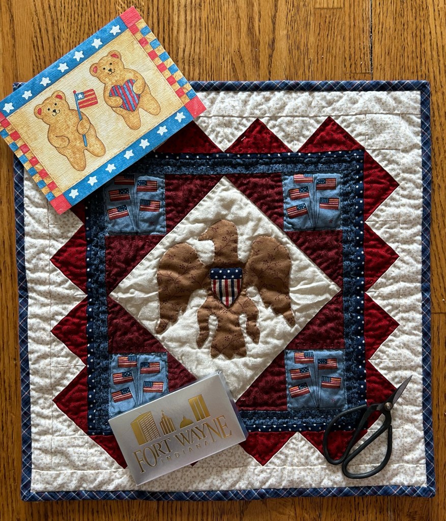 JoAnne made this wonderful little piece for me. You all know I love all things patriotic and she hit the nail on the head! Look at her beautiful hand appliqué and quilting!