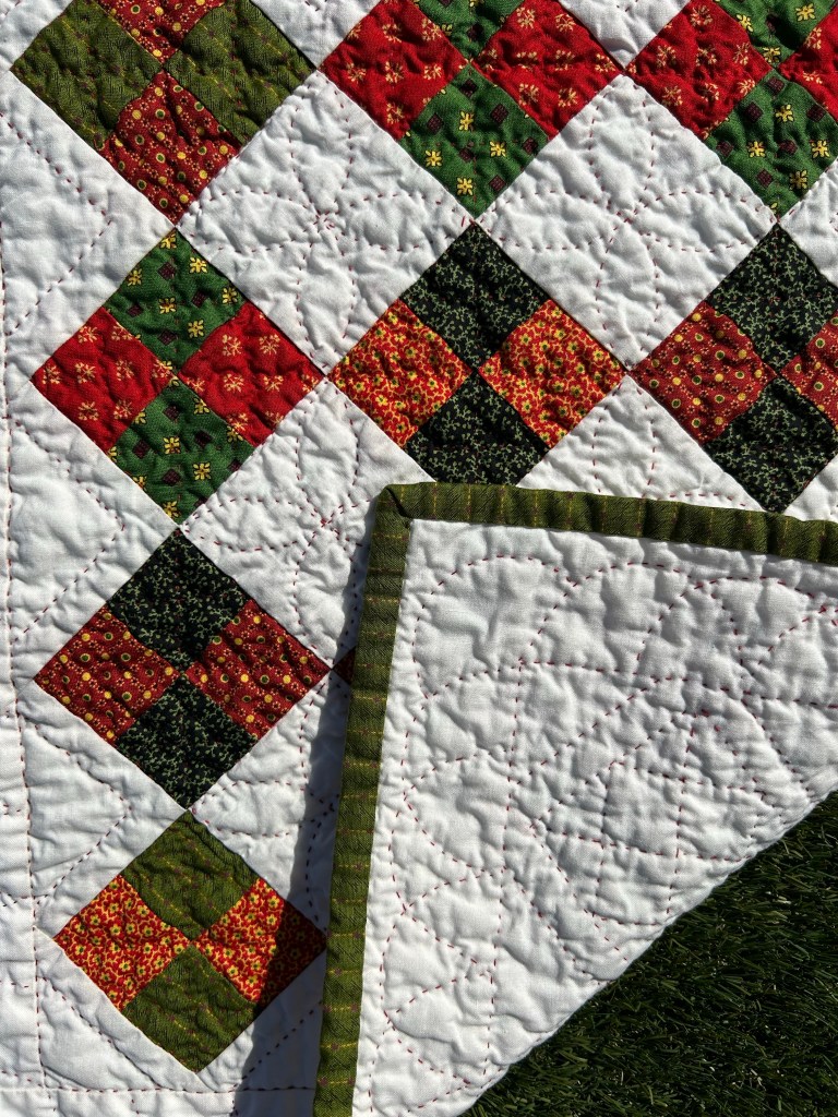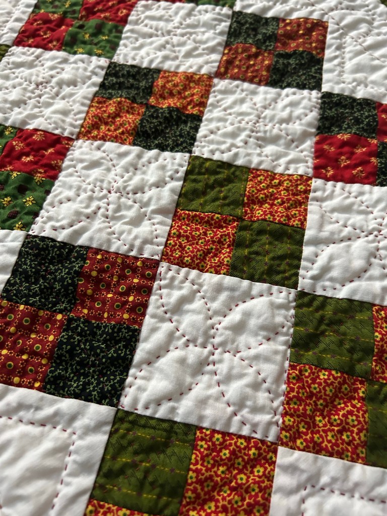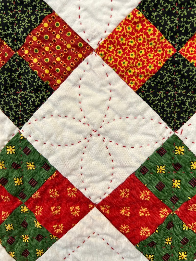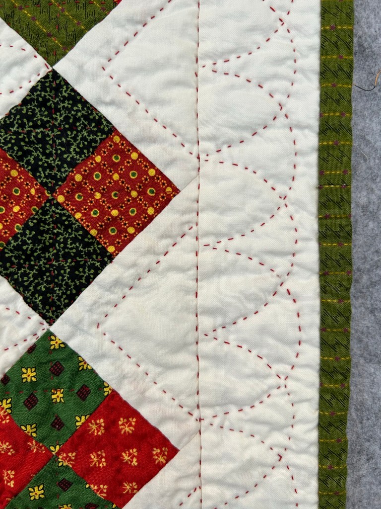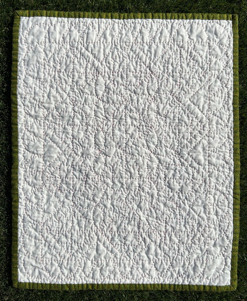 I enjoyed hand quilting this and I think the red thread was a good choice. Just look at the texture!