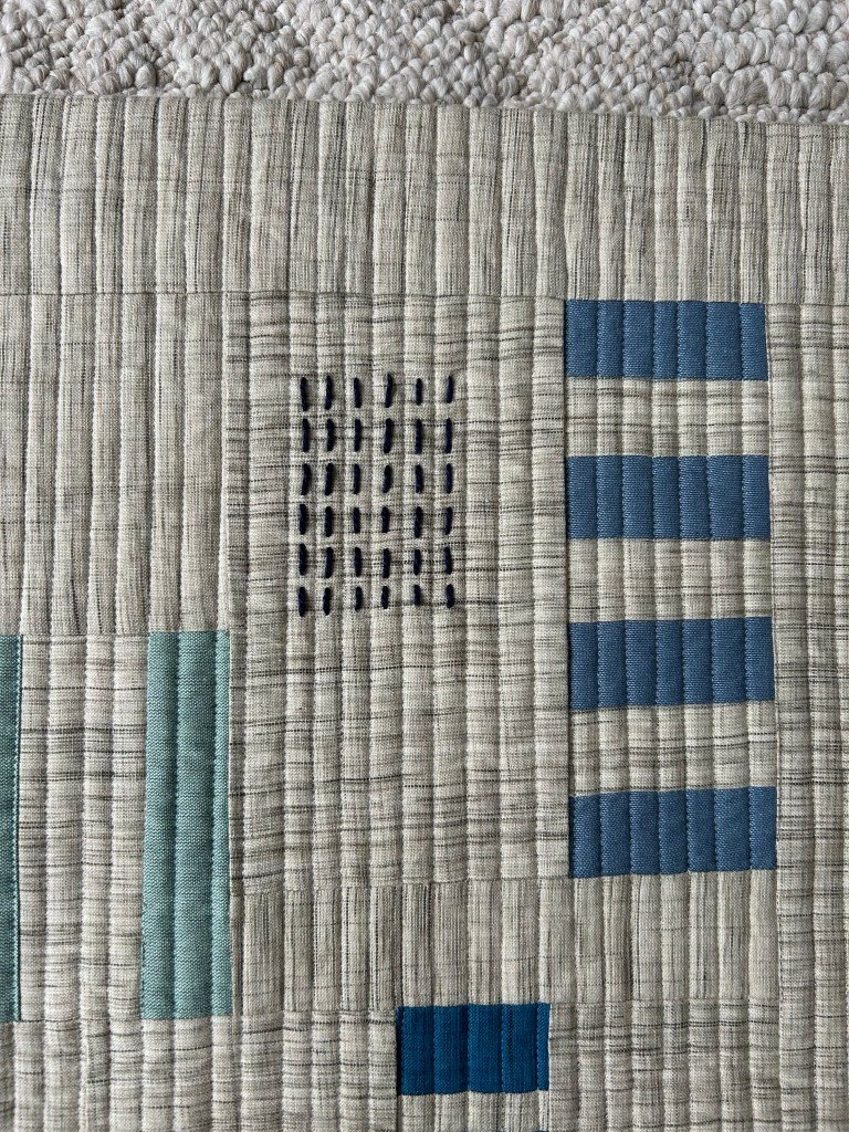 Daughter #3 suggested adding some embroidery to this. I had already been thinking of adding some hand quilting, so this is what I ended up with.