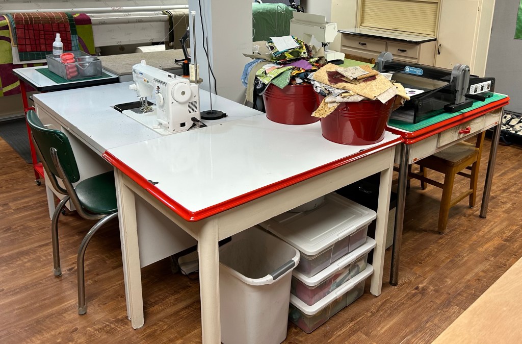 But this has. I moved my long arm, Friday, and created this taller cutting table/island. This has been working out very well.