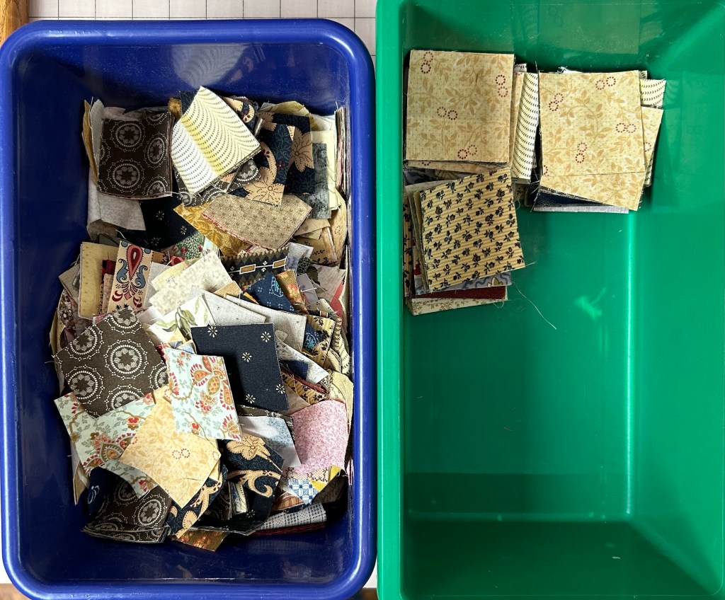 Along with rearranging the sewing room, comes dealing with scraps. These buckets are too full.