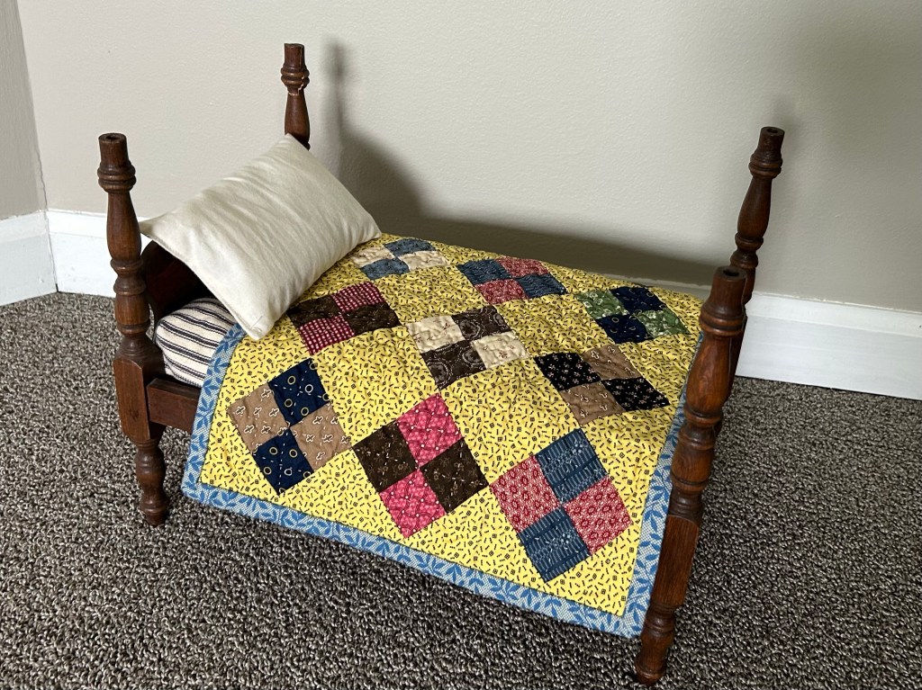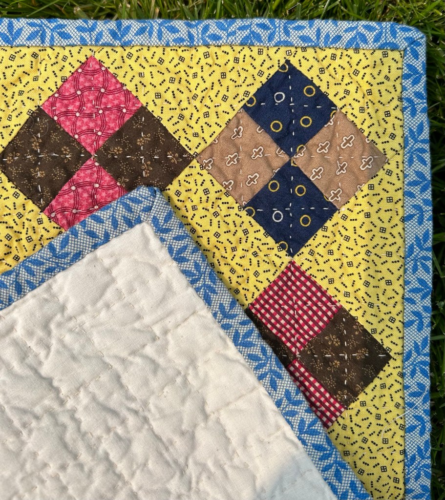 The next photos are after washing. I used a half layer of Mountain Mist BlueRibbon cotton batting. It isn’t made anymore, but if I see it at thrift shops or garage sales, I always grab it for minis.