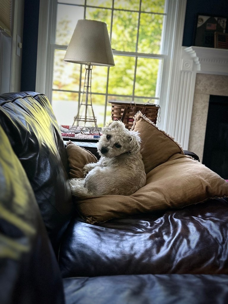 That box of feed sacks was a great find. It was so sweet of your daughter to pick it up for you. All your girls (and Mr. Wonderful) are so thoughtful. Awww, Willy is so adorable. My Chloe gets all tuckered out after having company too. She doesn’t want to miss a thing!