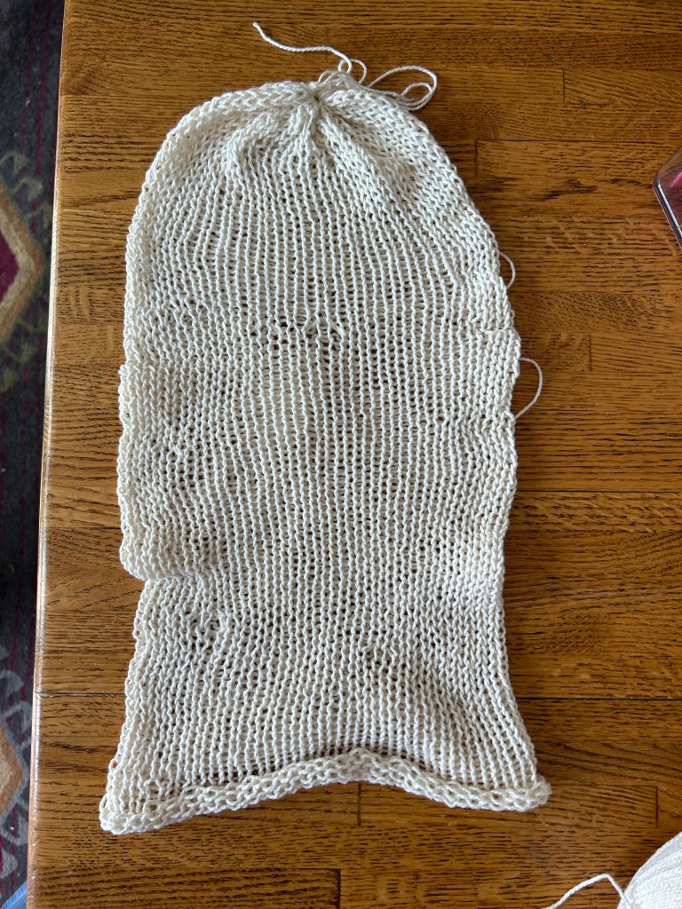 I’m not a big fan of the looser knitting. But I thought it would work well for a produce bag, so I tried that next.