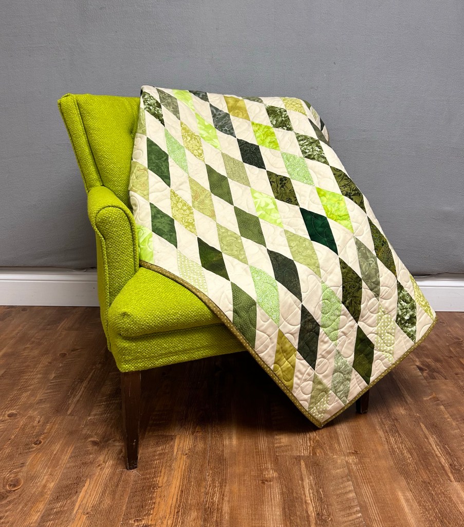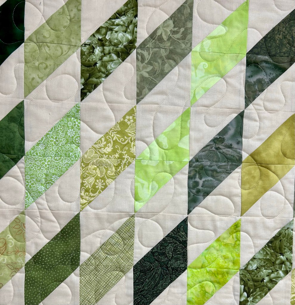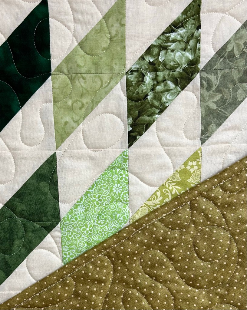 I like this quilt a lot – including the background fabric! I think the limited palette and the soothing effect of green make it a very peaceful quilt, restful to the senses 🙂