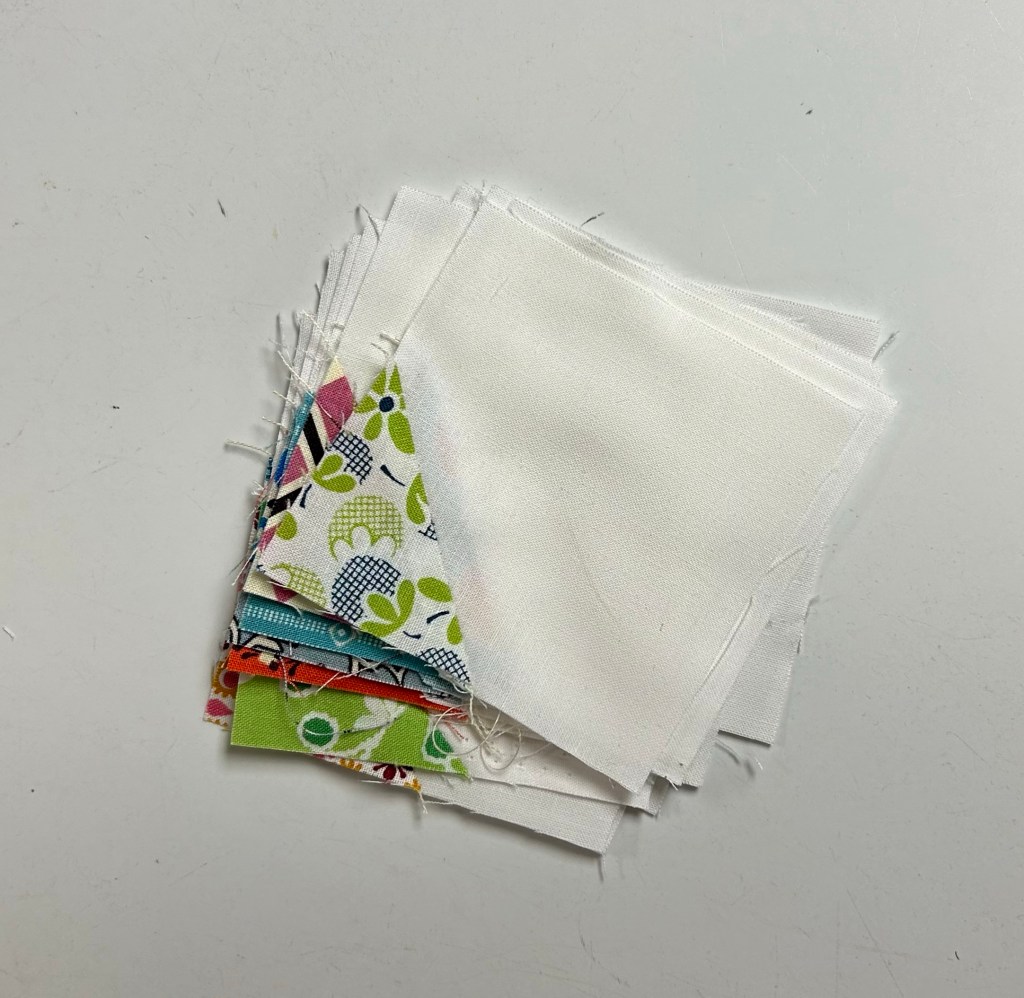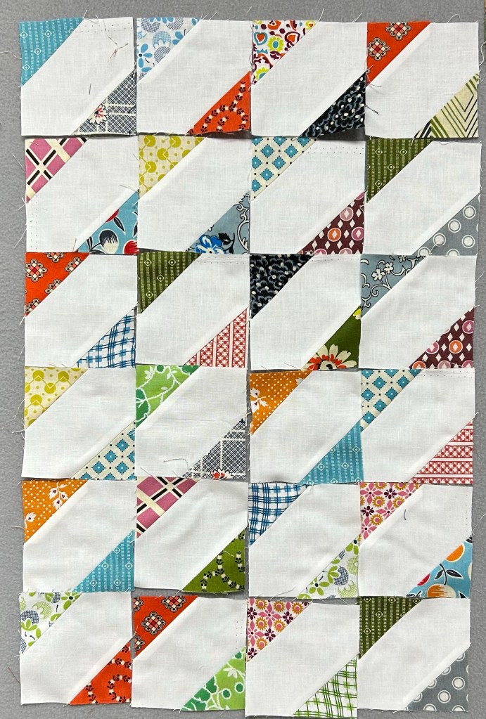 Turns out, I only had 24 of the white pieces left, but a bunch of print triangles. So I turned these….
