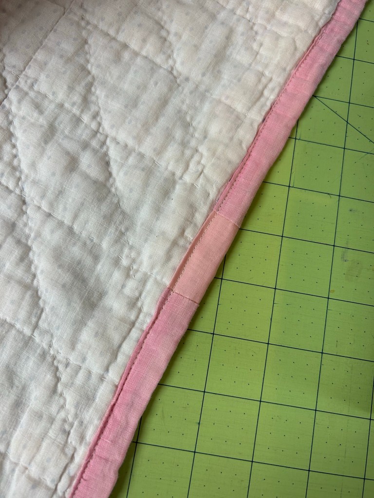 I finally finished the work on this quilt. You can see one piece had to be completely replaced. It’s pretty obvious, but part of the quilt’s story.