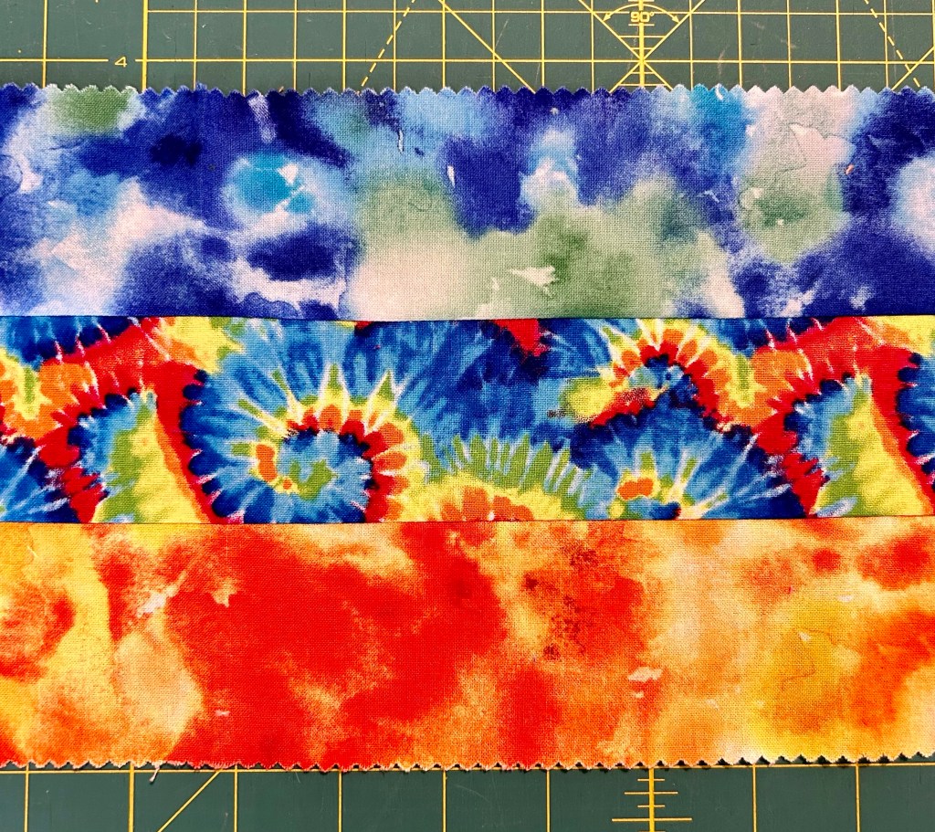 I was talking on the phone and wandering around the sewing room at the same time. I grabbed a jelly roll I picked up somewhere and opened it. I was a bit bummed to realize there were only 24 strips, eight of each of these three prints.