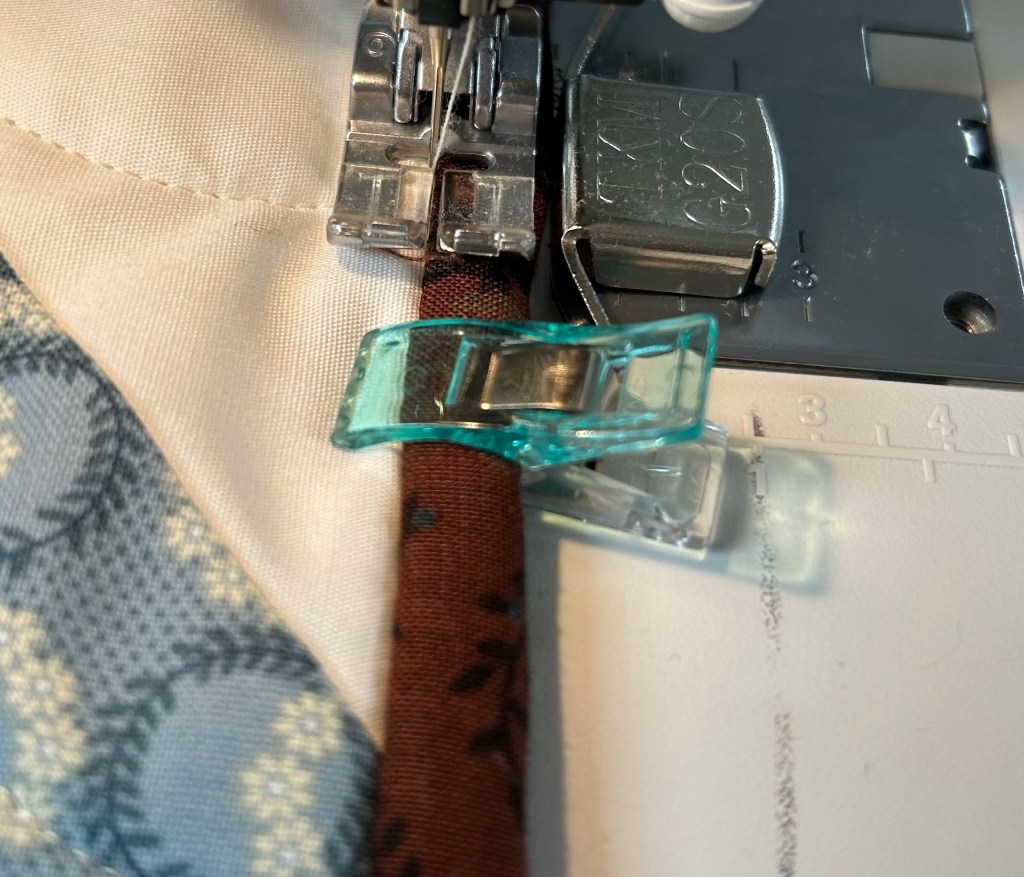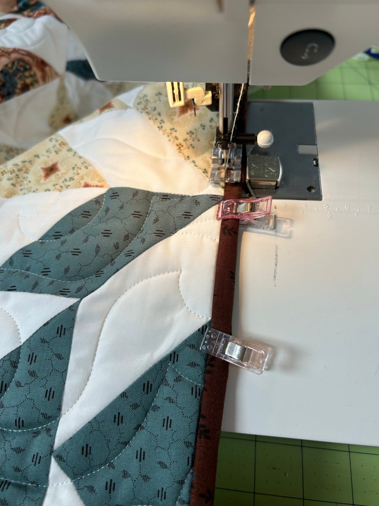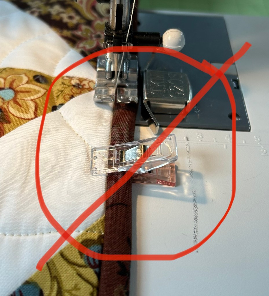 Yes, the clips are great! Does your machine have a serpentine stitch? I use that for sewing binding and it catches the fabric really well. (I also found that cutting the binding 2″ is better than 2.25″.)