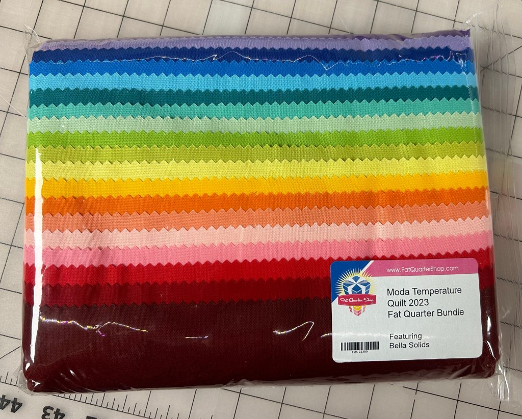 It would seem to be the wrong time of year to start a temperature quilt, but I just might do it. I was talking with my friend Kelly about this recently and then I found this bundle at Fat Quarter Shop . I will need to add a few more solids to extend the range, but this would give me a good start.