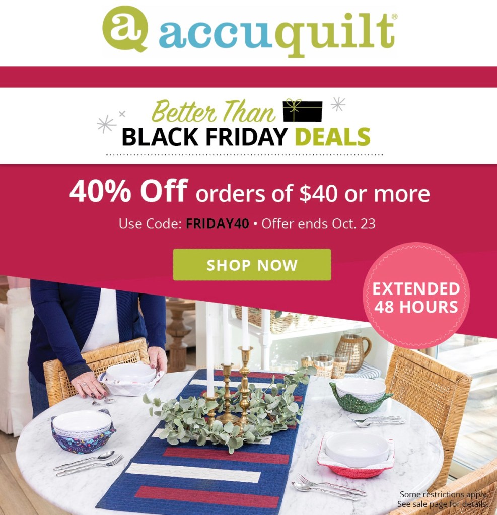 Before I go, I wanted to let you know that this fantastic AccuQuilt deal has been extended until midnight tonight!